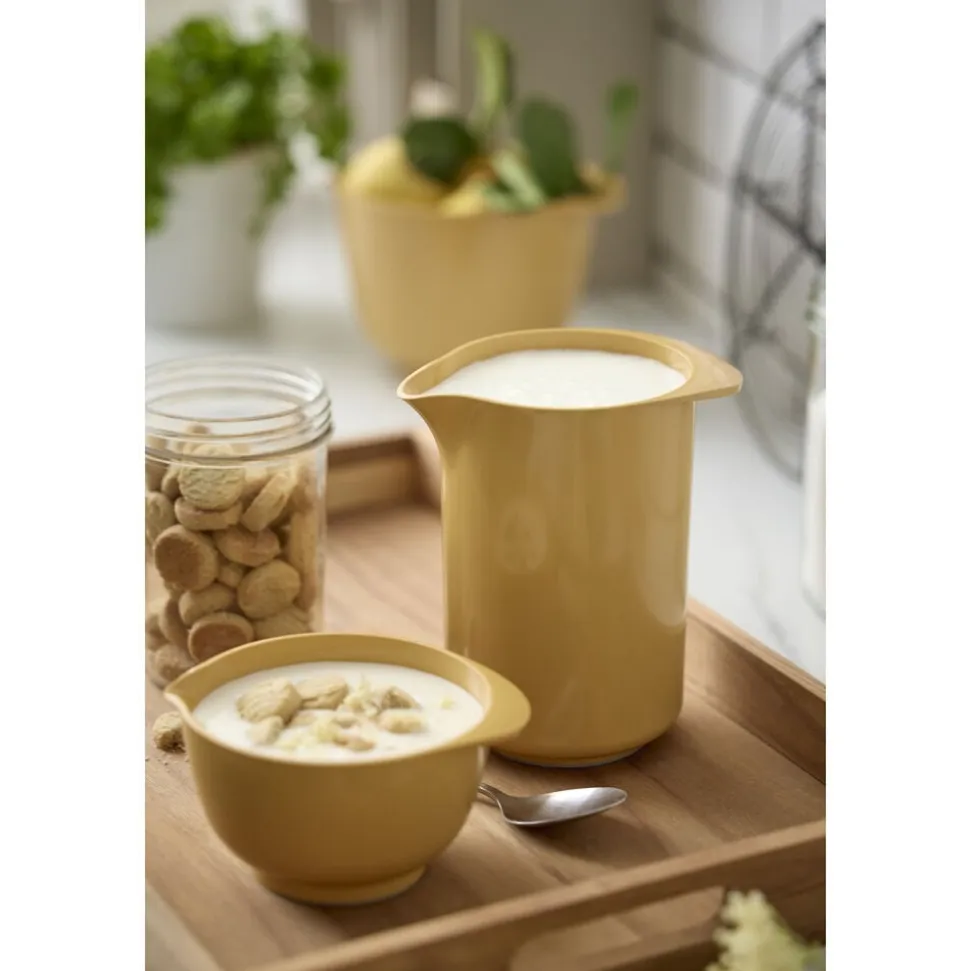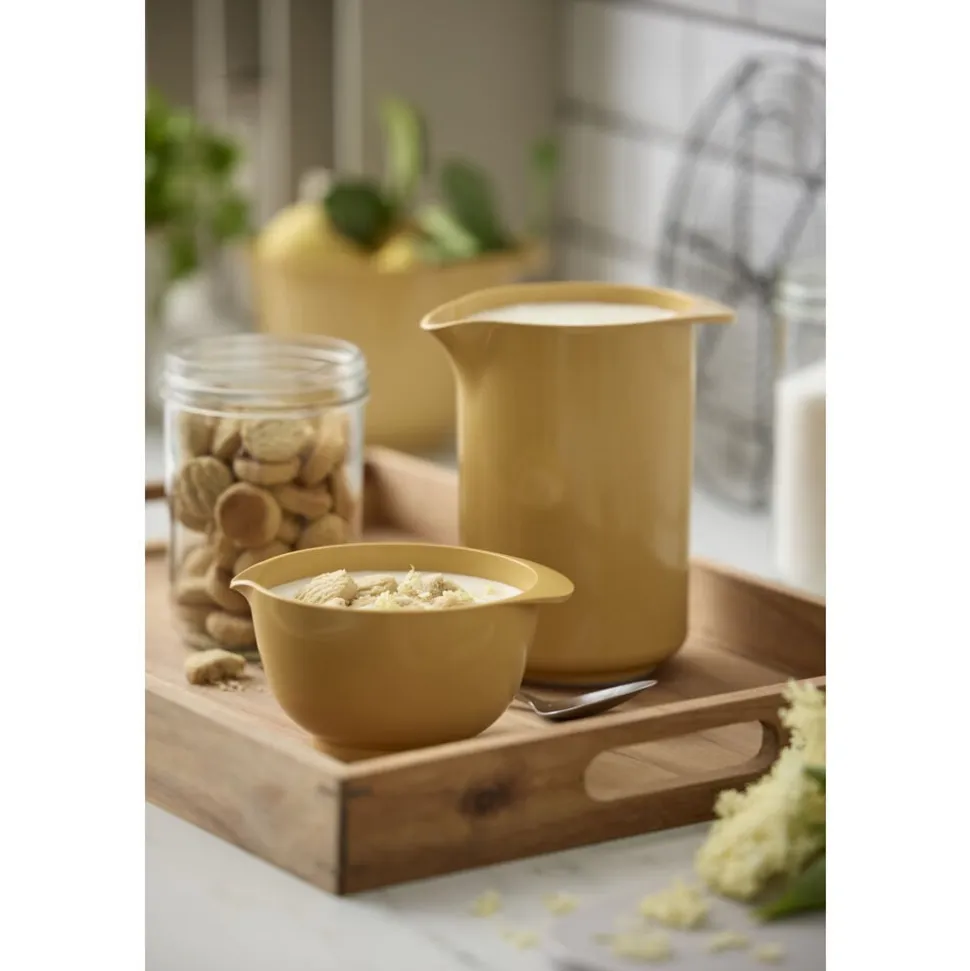 Rostis klassiske mixkande er et musthave i ethvert køkken, såvel til tilberedning som til servering og opbevaring. Mixkanden er designet til at matche Margrethe-skålen og fås i de samme farver. Kanden har praktisk greb og hældetud og rummer 1,25 liter, og den er lige praktisk til at piske flødeskum i og til at servere drikkevarer i.