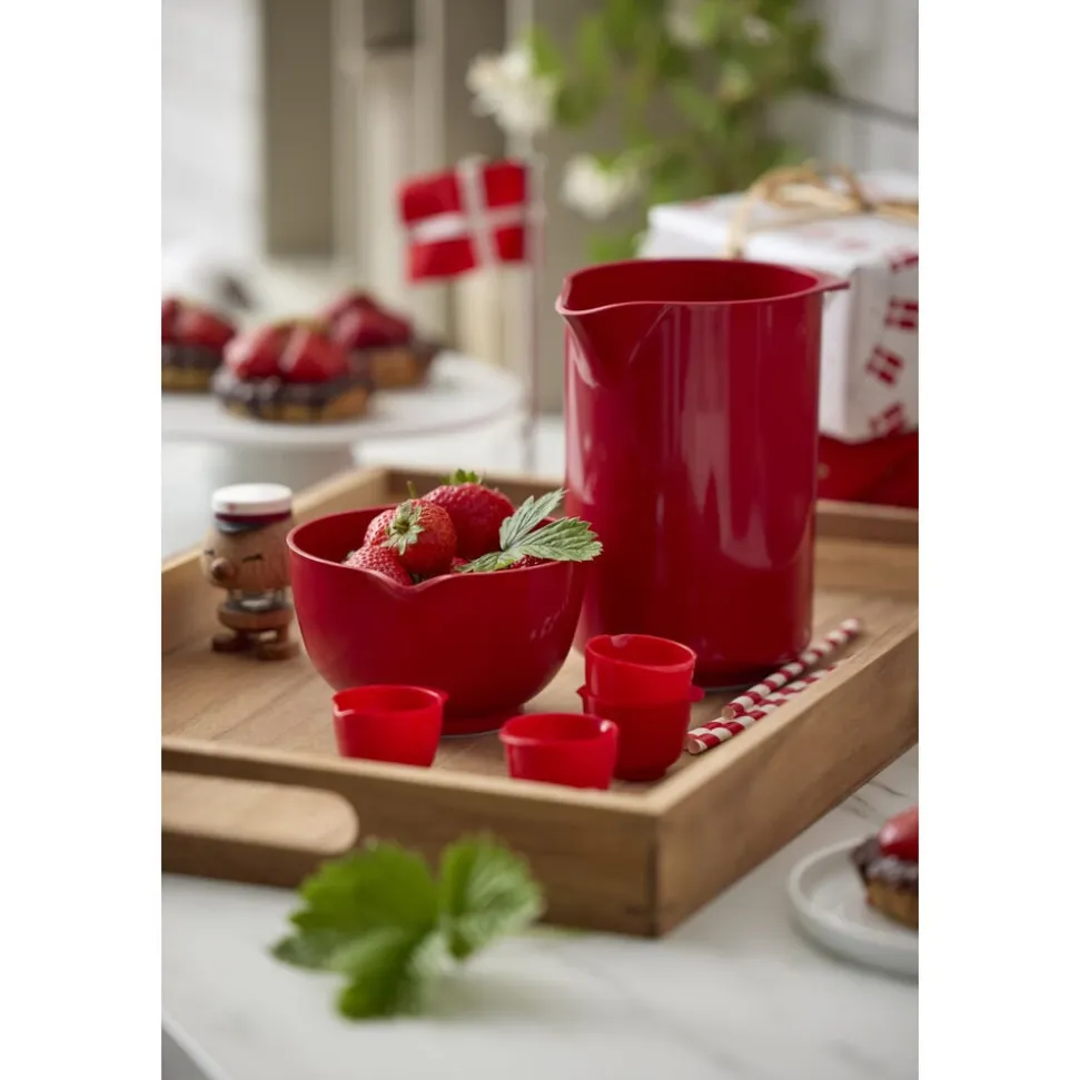 Rostis klassiske mixkande er et musthave i ethvert køkken, såvel til tilberedning som til servering og opbevaring. Mixkanden er designet til at matche Margrethe-skålen og fås i de samme farver. Kanden har praktisk greb og hældetud og rummer 1,25 liter, og den er lige praktisk til at piske flødeskum i og til at servere drikkevarer i.