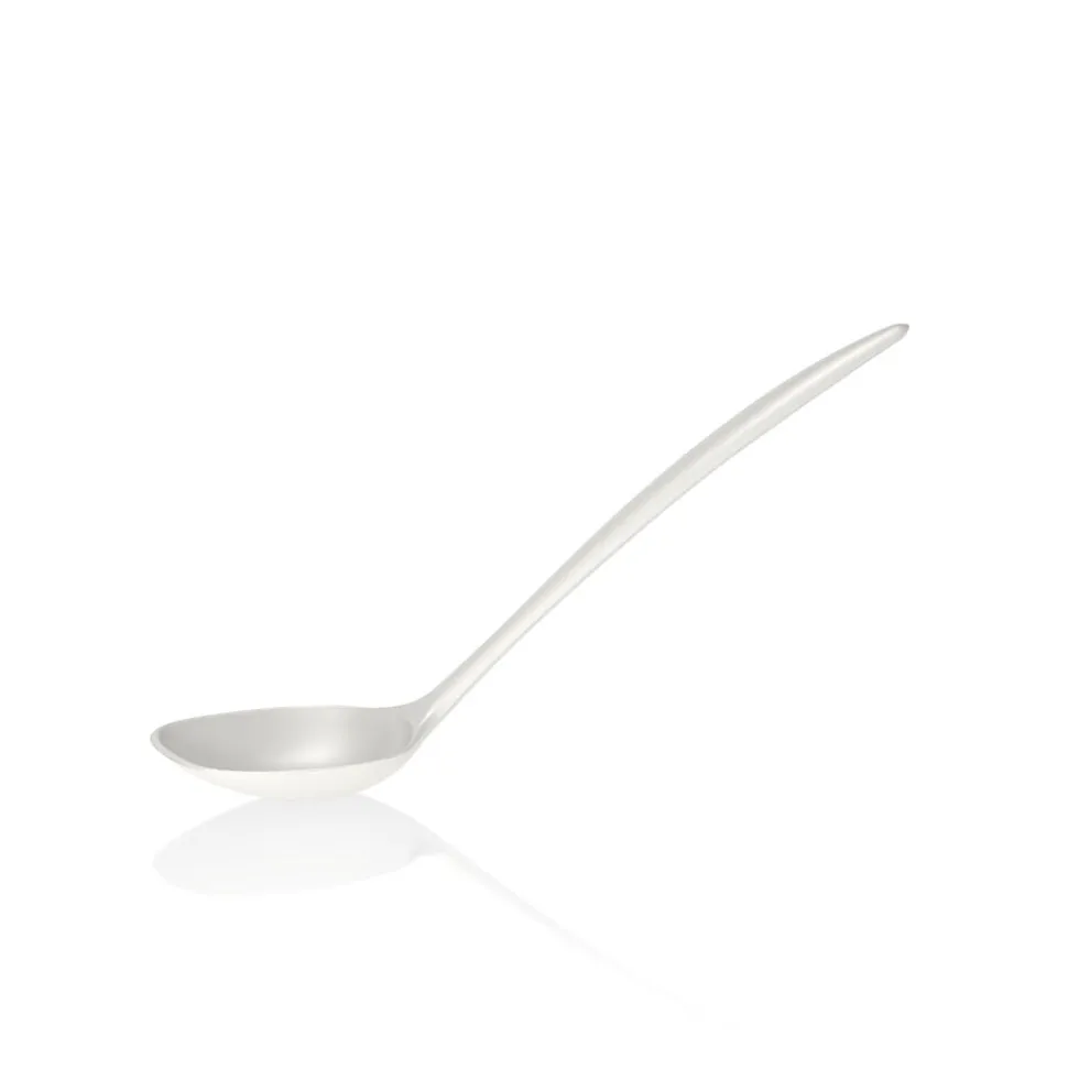 Rostis store serveringsske har et stort, dybt hoved i en skrå vinkel på skaftet. Længden er 30 cm, og skeen er ideel til opøsning af f.eks. kartofler og grønsager – lige til at stikke i skålen eller gryden og sætte på bordet.