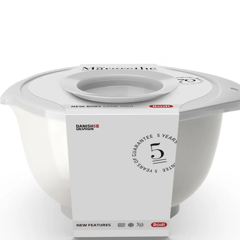 Margrethe-skålen er den klassiske røreskål med det gode greb, den praktiske hældetud og den skridsikre bundring. Den nye version af Margrethe-skålen er fremstillet af plastmaterialet Durostima®. Skålen er nu endnu stærkere og mere brudsikker, og med det nye materiale kan den også tåle mikroovn og fryser. Margrethe-skålen er velegnet til såvel tilberedning som servering, og tilkøbes der låg, er røreskålen omdannet til en praktisk opbevaringsskål. 5 års garanti.