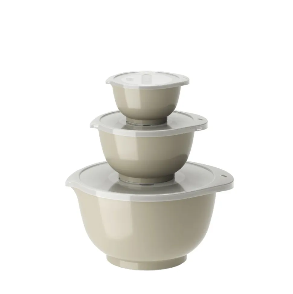 Margrethe røreskålesæt fra Rosti i 3 af de mest anvendte størrelser. Sættet indeholder 0,25 + 0,75 + 3 liter Margrethe-skåle med tilhørende låg.