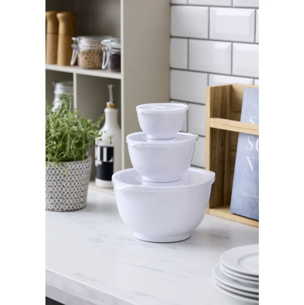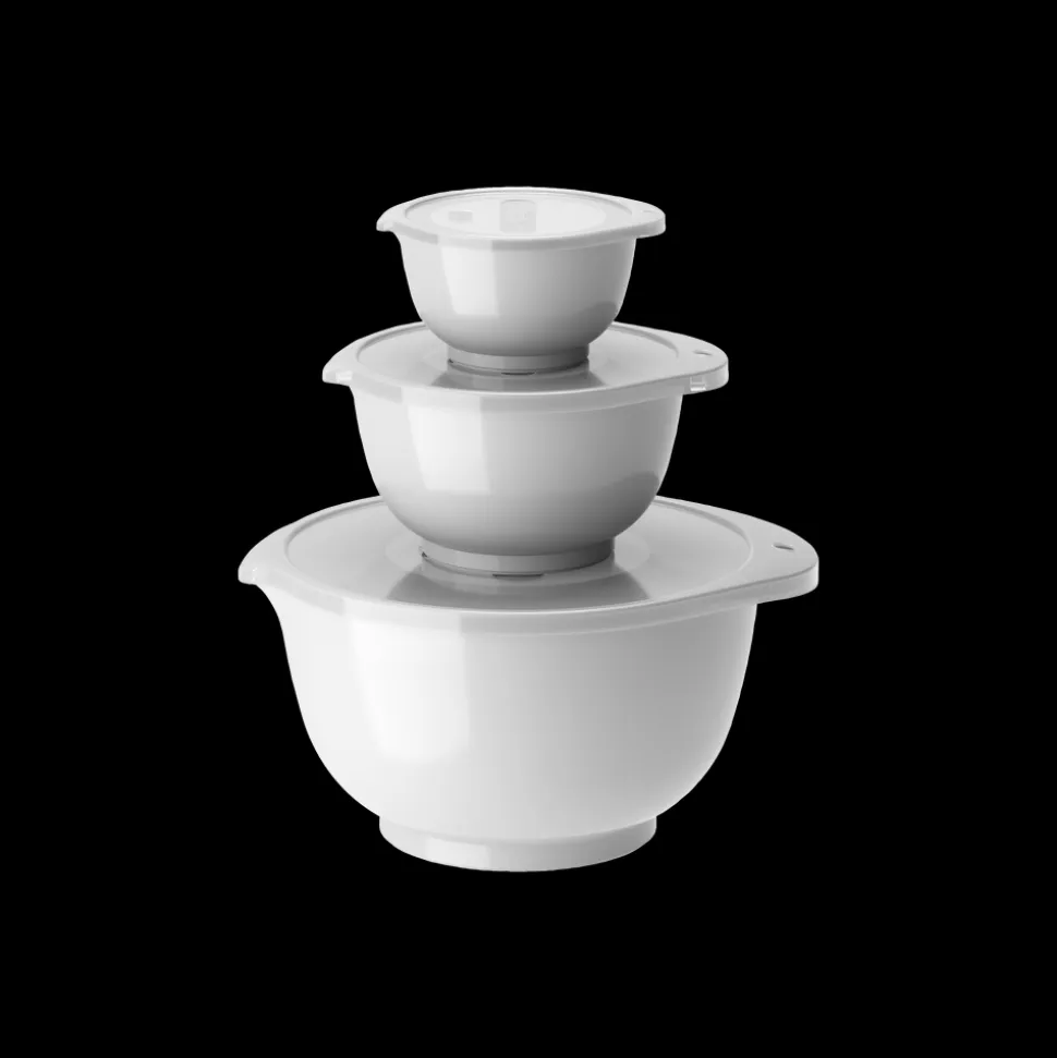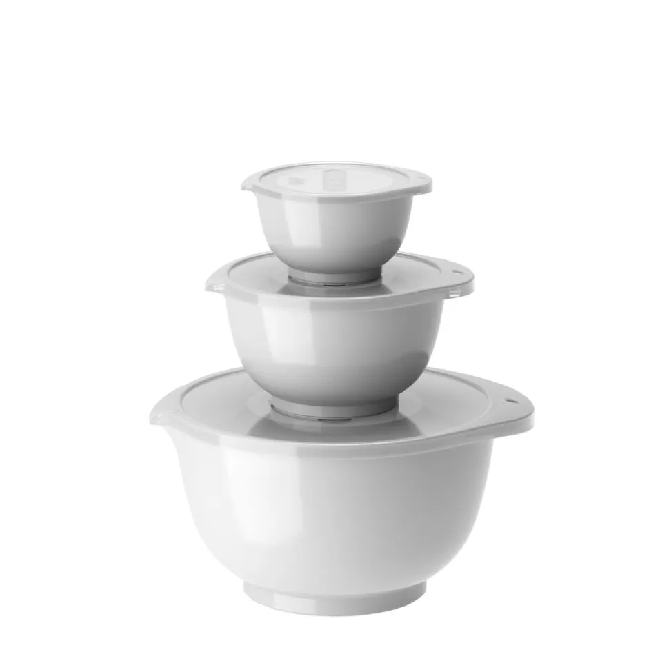 Margrethe røreskålesæt fra Rosti i 3 af de mest anvendte størrelser. Sættet indeholder 0,25 + 0,75 + 3 liter Margrethe-skåle med tilhørende låg.