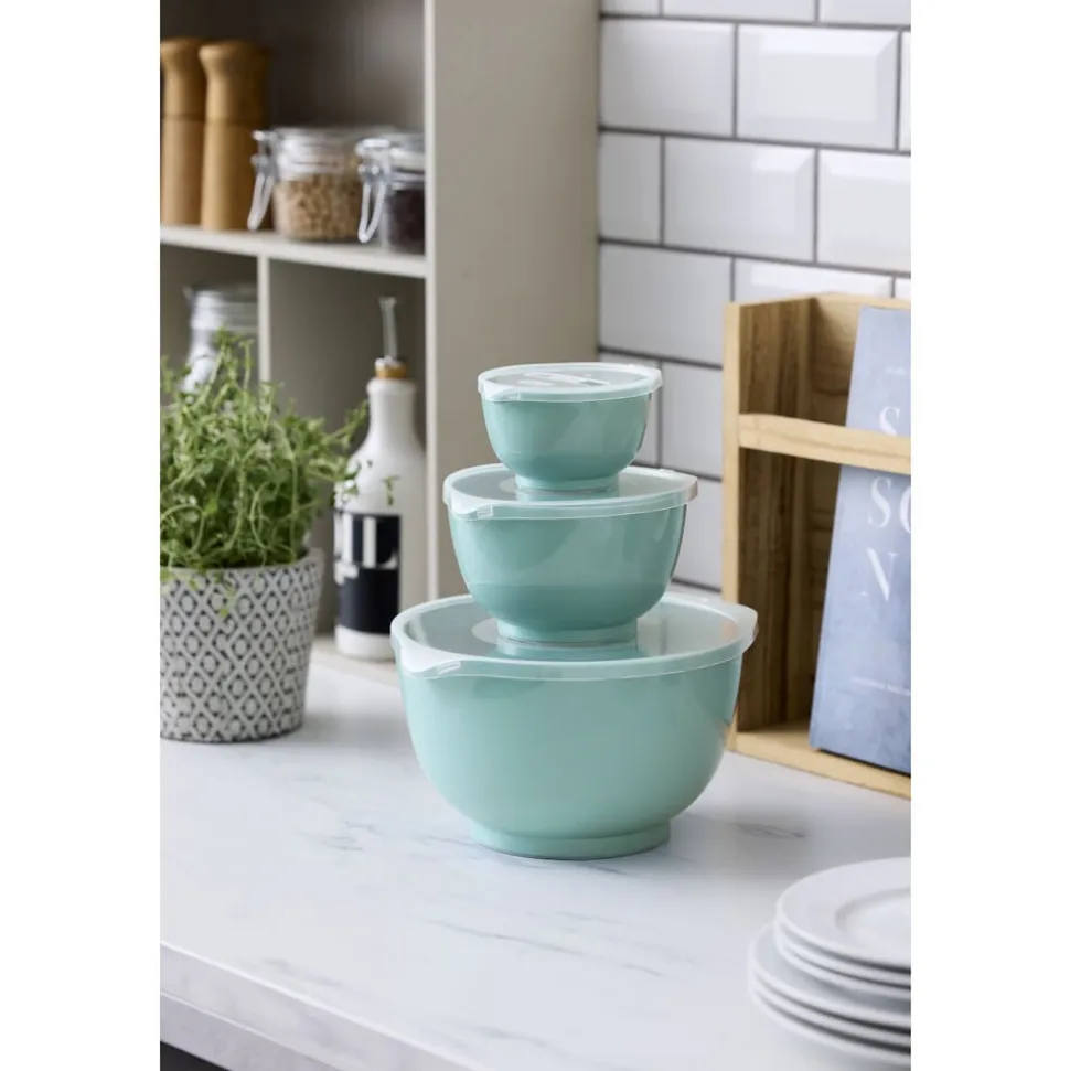 Margrethe røreskålesæt fra Rosti i 3 af de mest anvendte størrelser. Sættet indeholder 0,25 + 0,75 + 3 liter Margrethe-skåle med tilhørende låg.