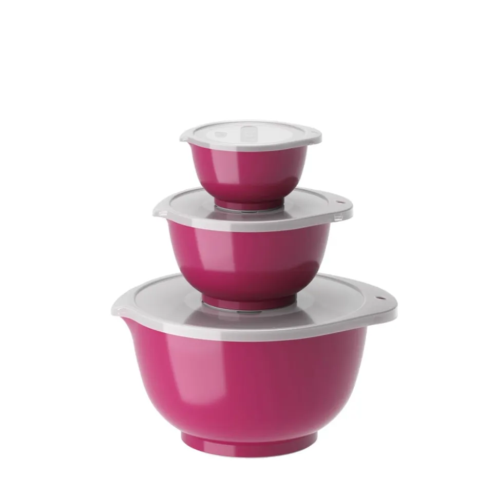 Margrethe røreskålesæt fra Rosti i 3 af de mest anvendte størrelser. Sættet indeholder 0,25 + 0,75 + 3 liter Margrethe-skåle med tilhørende låg.