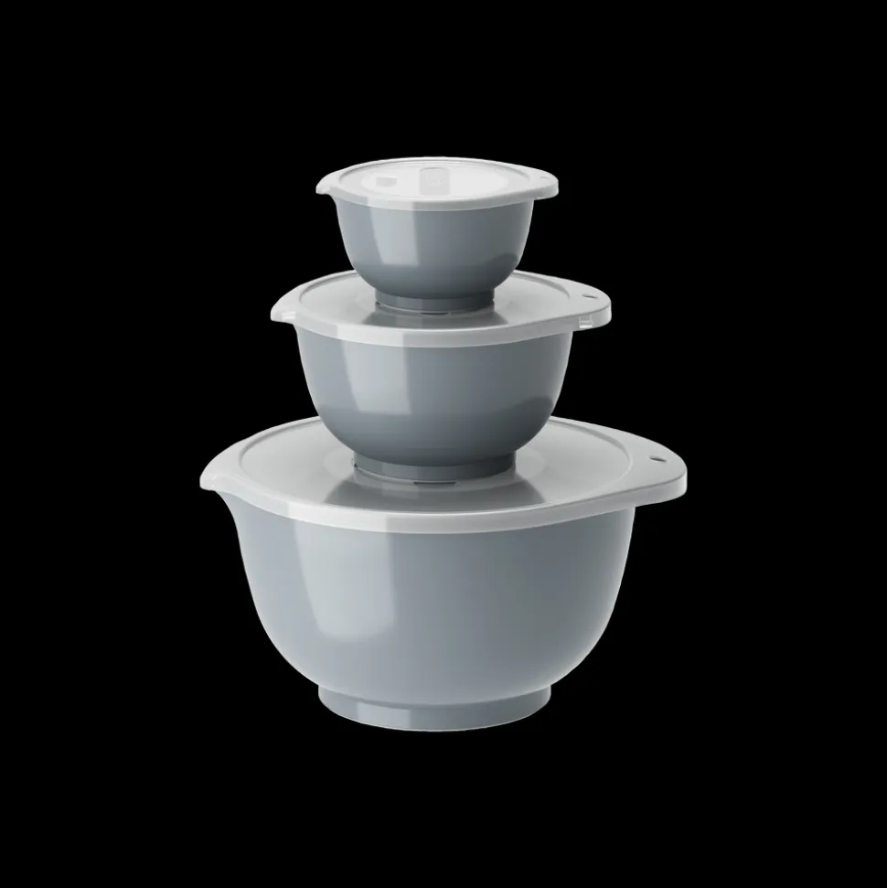 Margrethe røreskålesæt fra Rosti i 3 af de mest anvendte størrelser. Sættet indeholder 0,25 + 0,75 + 3 liter Margrethe-skåle med tilhørende låg.