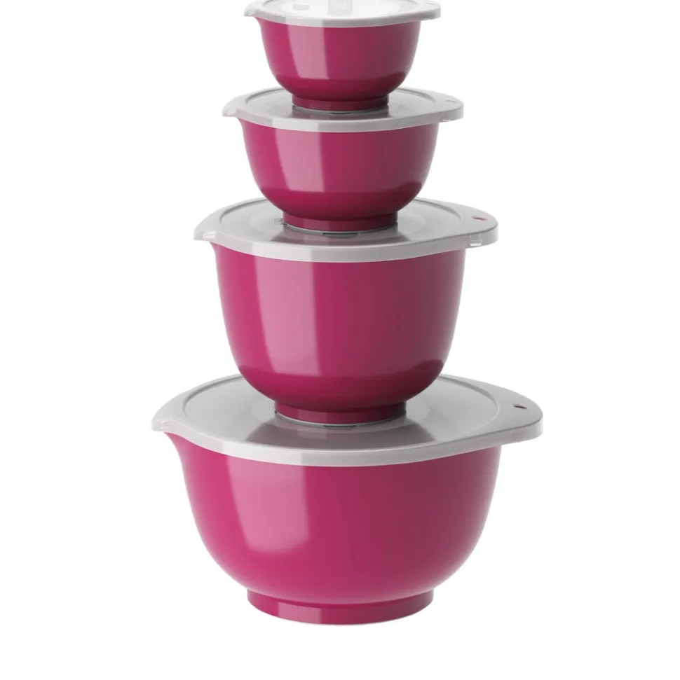 Margrethe røreskålesæt fra Rosti i 4 af de mest anvendte størrelser. Sættet indeholder 0,25 + 0,5 + 1,5 + 3 liter Margrethe-skåle med tilhørende låg.