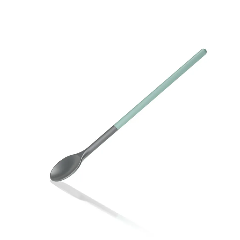 Ske med farvet skaft og rundt hoved med en diameter på 5,5 cm. Længde 30 cm. Den elegante ske er fremstillet i nylon, der er skånsomt mod gryder og pander med belægning og tåler varme op til 220 grader C. Velegnet til opvaskemaskine.