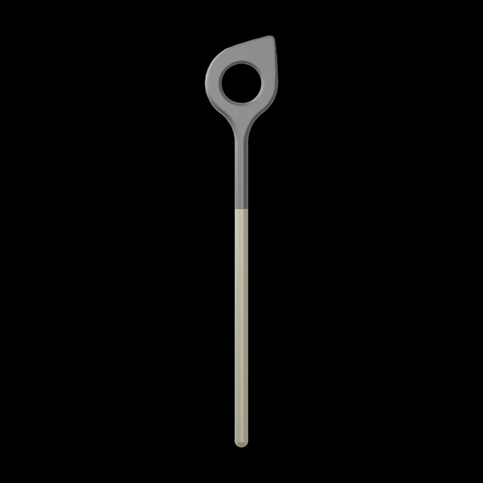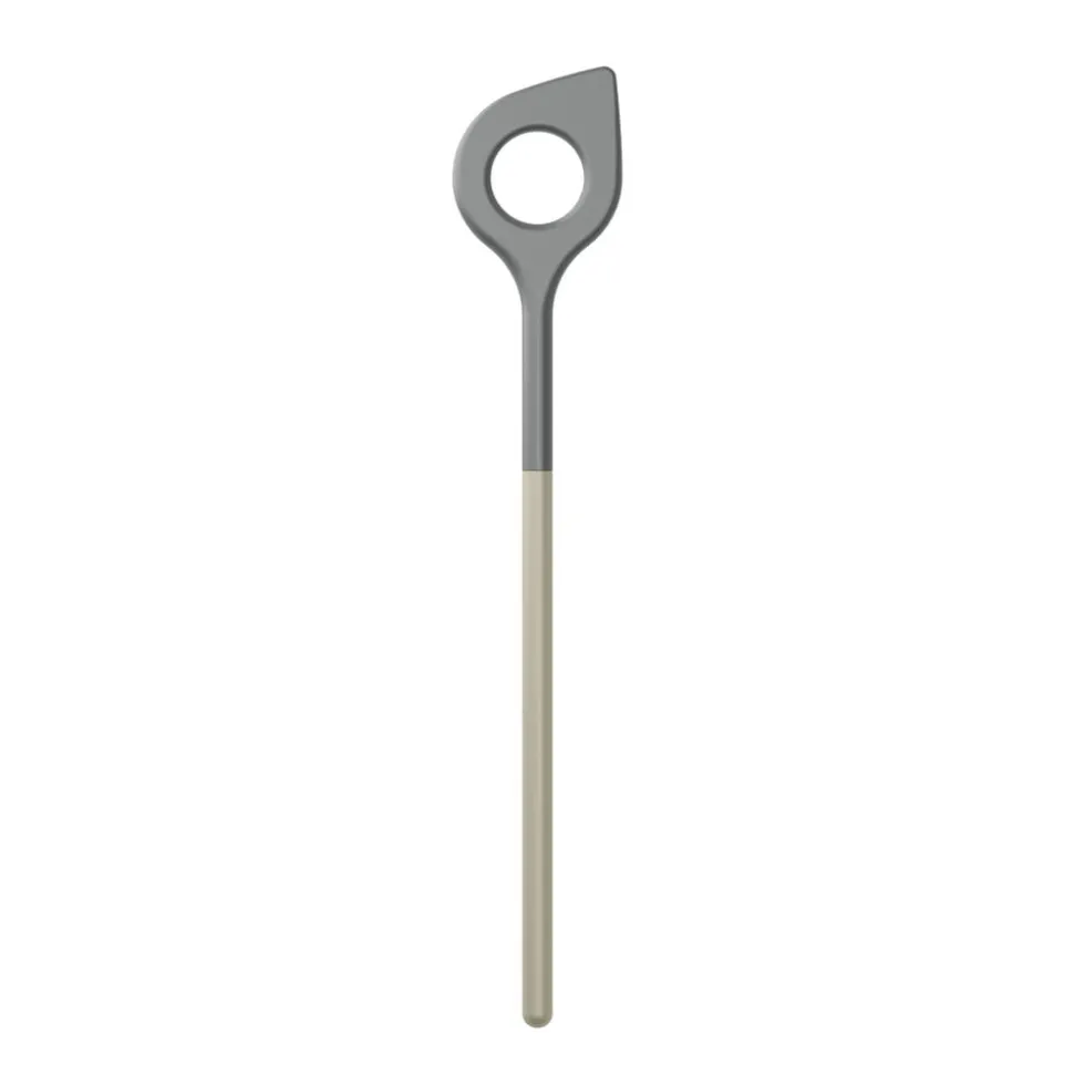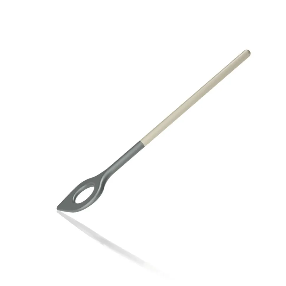 Røreske med hul og farvet skaft. 31 cm. Skeens hoved har en diameter på 5,5 mm, og spidsen i den ene side gør det nemmere at røre helt ind i kanten af grydens bund. Hullet i skeen gør den velegnet til fremstilling af bl.a. fars og dej og til at røre i ris. Fremstillet i nylon, der er skånsomt mod gryder og pander med belægning og tåler varme op til 220 grader C. Velegnet til opvaskemaskine.