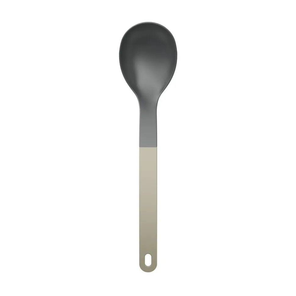 Serveringsske med farvet skaft. 29 cm. Lige til at stikke i skålen eller gryden og sætte på bordet. Fremstillet i nylon, der er skånsomt mod gryder og pander med belægning og tåler varme op til 220 grader C. Ergonomisk design med praktisk ophængshul. Velegnet til opvaskemaskine.