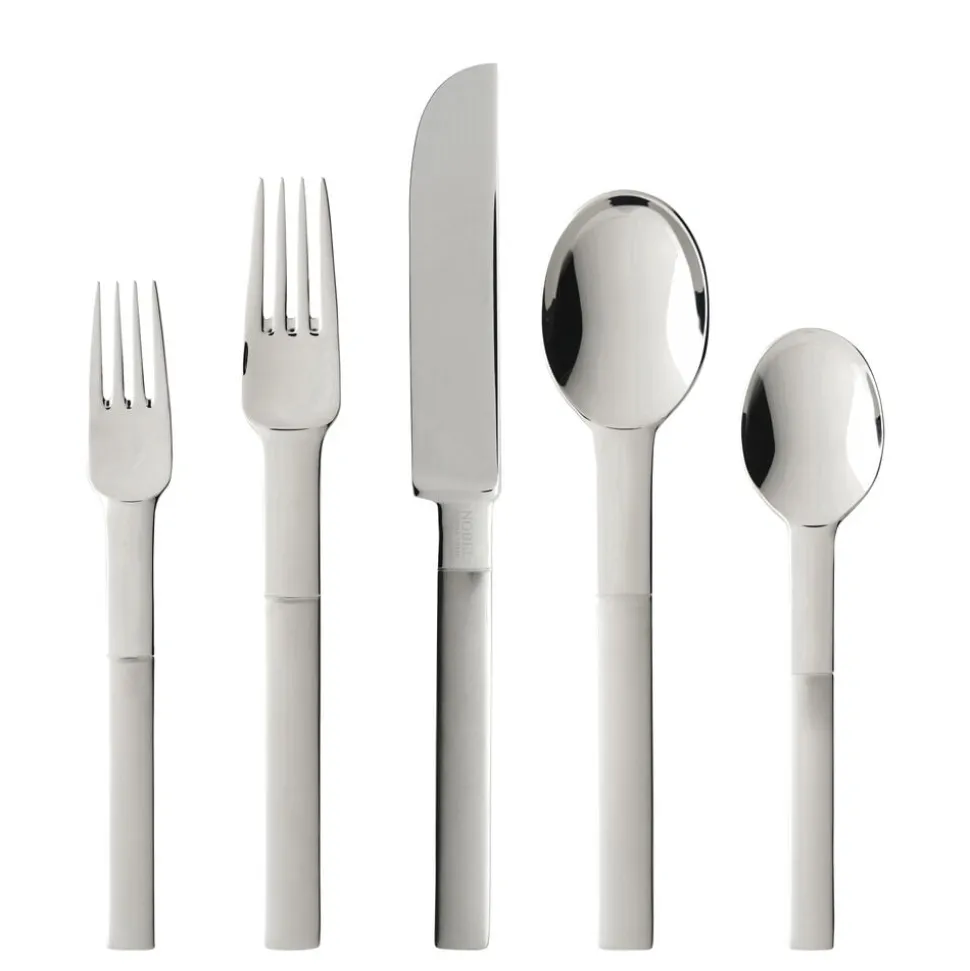 Nobel blev skabt af Gunnar Cyrén til Nobelprisudelingens 90-års jubilæum og er allerede blevet en klassiker. Bestikket er inspireret af begyndelsen af 1800-tallet og Karl XIV Johans sølvbestik. Et bestik, der er umiskendeligt svensk, men med nye detaljer, der overrasker. Nobel tilføjer det ekstra – uanset om du vælger at dække op helt traditionelt med hvide duge og kandelabre, eller moderne og trendy med nye materialer og borddekorationer. Nobel er fremstillet af rustfrit stål med let børstet skaft og højglanspoleret hoved, og det bruges stadig ved den årlige uddeling af Nobelprisen i Stockholm. Tåler opvaskemaskine.