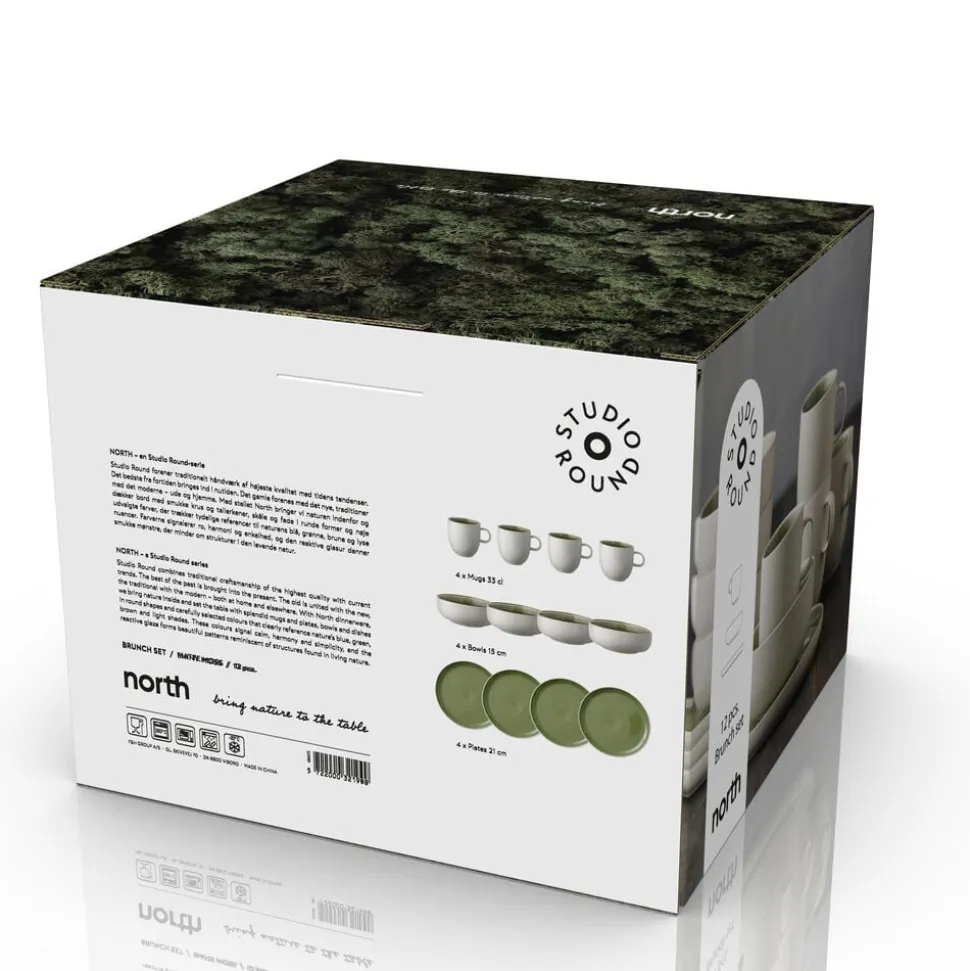 Dette sæt indeholder 4 tallerkener dia. 21 cm, 4 skåle dia. 15 cm samt 4 krus 30 cl.