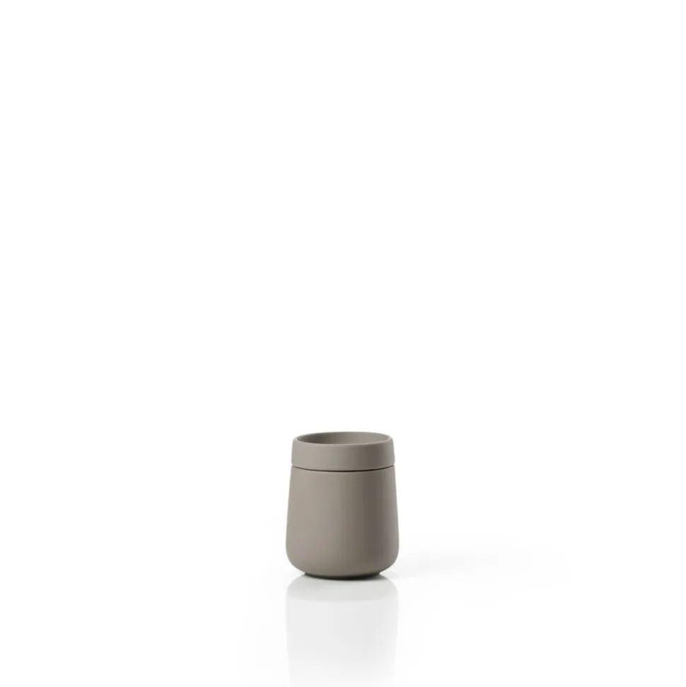 Den lille stentøjskrukke med låg er lige så fin, som den er anvendelig. Fyld den med alt det, der endnu ikke har fået en fast plads på badeværelset. Vatrondeller, hårpynt eller kontaktlinser måske? Låget har en fin fordybning, og det er derfor som skabt til at lægge smykkerne på, inden du lægger dig på puden.