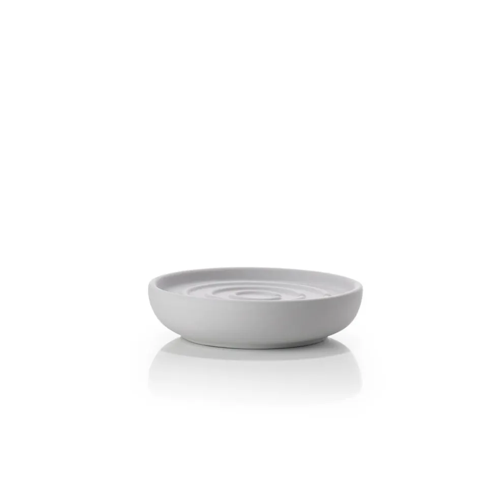 Sæbeskålen fra Nova badserie spreder ro og harmoni på badeværelset. Serien skaber fornemmelsen af luksus og spa-stemning med sin uimodståelige, lækre soft touch-overflade med detaljer i stål-look og et blødt formsprog. Dia. 11 cm, højde 2,5 cm.