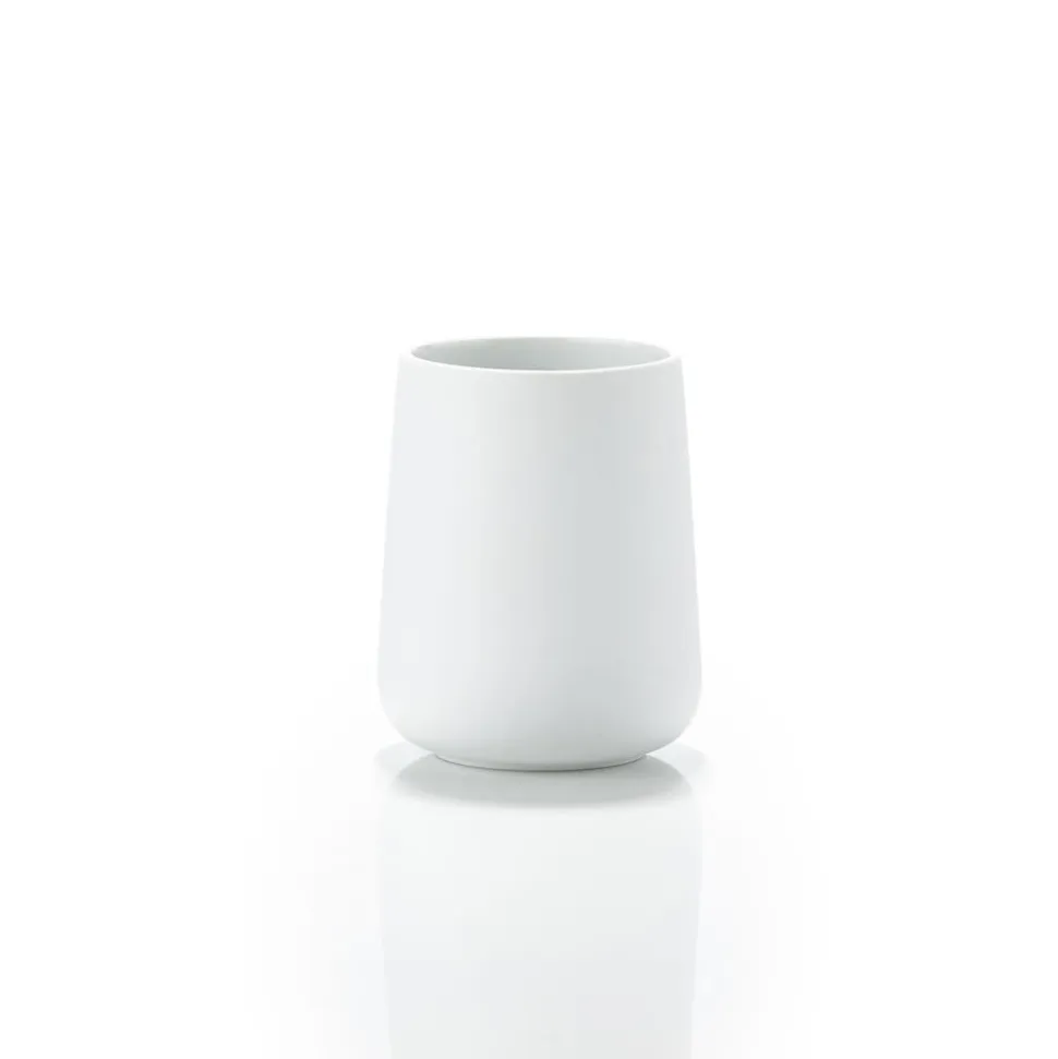 Tandbørstekruset fra Nova badserie spreder ro og harmoni på badeværelset. Serien skaber fornemmelsen af luksus og spa-stemning med sin uimodståelige, lækre soft touch-overflade med detaljer i stål-look og et blødt formsprog. Dia. 8 cm, højde 10 cm.