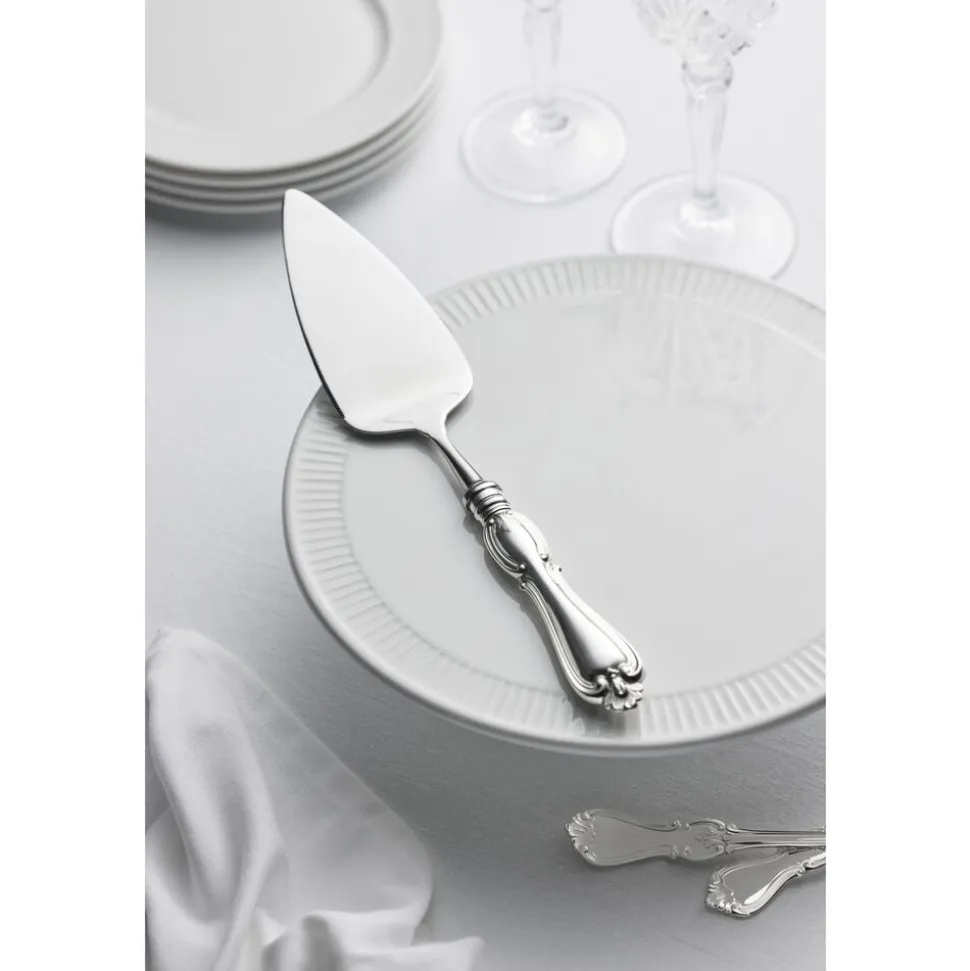 Olga har sin oprindelse i den engelske nyrokoko fra det 19. århundrede. Bestikket er designet til at passe til den tids storstilede borddækninger med krystalglas og smukt foldede servietter. Og det gør sig mindst lige så godt i dag – uanset stil og øvrige omgivelser. Med sine levende bladmønstre er det et design, der tager form og bliver noget, man snakker om rundt om bordet.