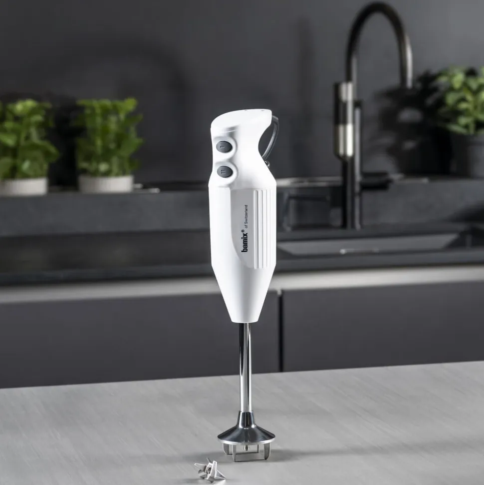 bamix® One-stavblender med en kraftig 160 watt motor, der sikrer pålidelig hjælp til selv de hårdeste opgaver i køkkenet. Stavblenderen har to hastighedsindstillinger og en praktisk ledning, der giver masser af fleksibilitet. Til produktet medfølger en multifunktionskniv og en instruktionsmanual. Livstidsgaranti på motor.