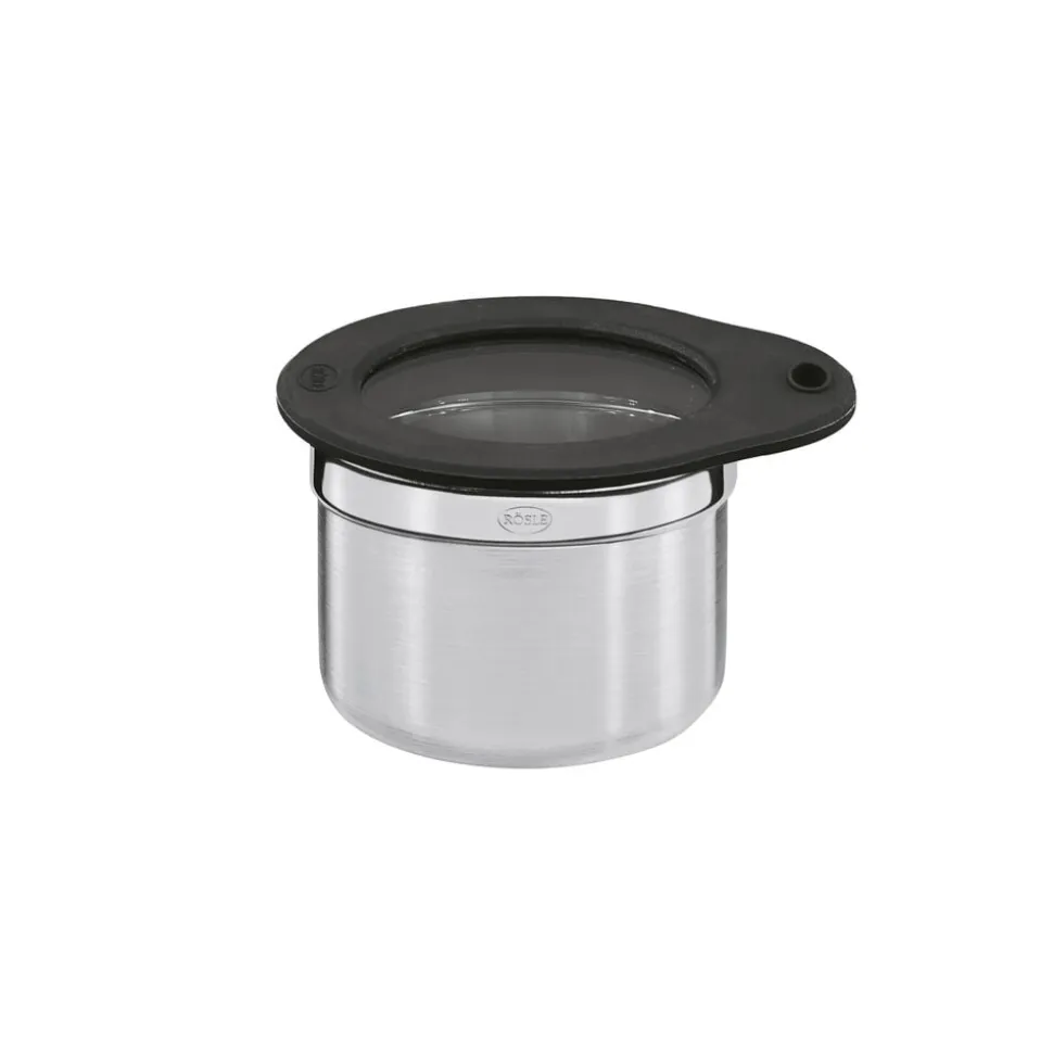 RÖSLE opbevaringsdåse af rustfrit stål er perfekt til opbevaring af mad, da smagen ikke påvirkes, samtidig med at den er nem at rengøre samt holdbar. Silikonekanten på glaslåget forsegler opbevaringsdåsen helt tæt, mens det flade låg gør det nemt at stable flere opbevaringsdåser.