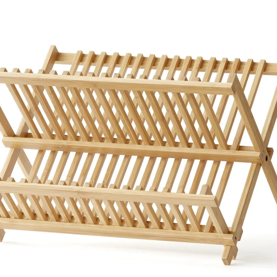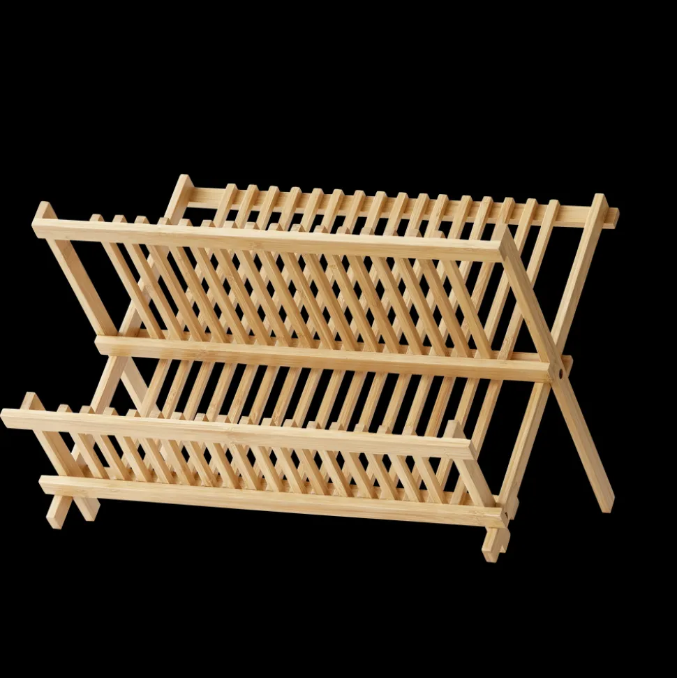 Funktionelt opvaskestativ i bambus. Den øverste del er indrettet til tallerkener og skåle, mens den nederste del er praktisk til f.eks. kopper og glas. Stativet er dekorativt at have stående fremme, men kan også foldes sammen, så det fylder minimalt, når det ikke er i brug. Sammenklappet mål: 42 x 35 x 3 cm.