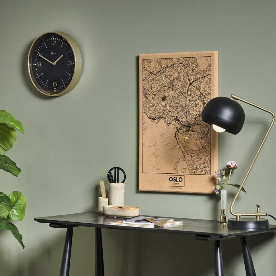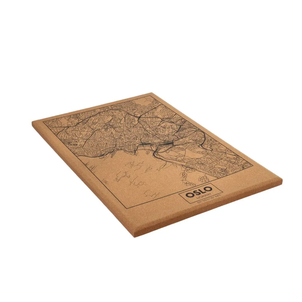 Bykort med Oslos vejnet på korkplade uden ramme.