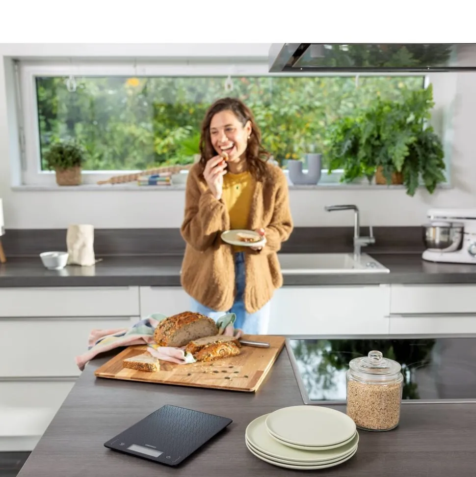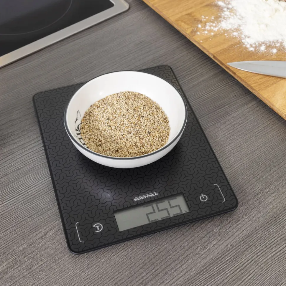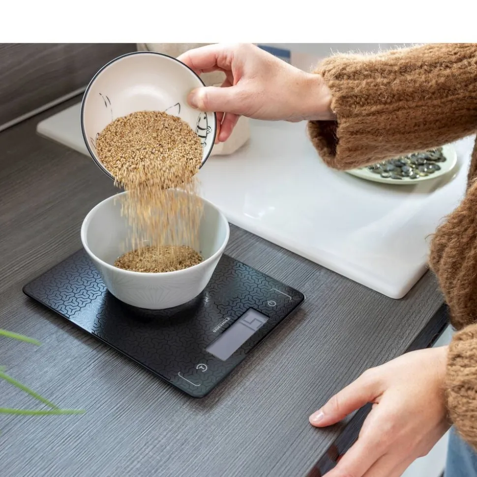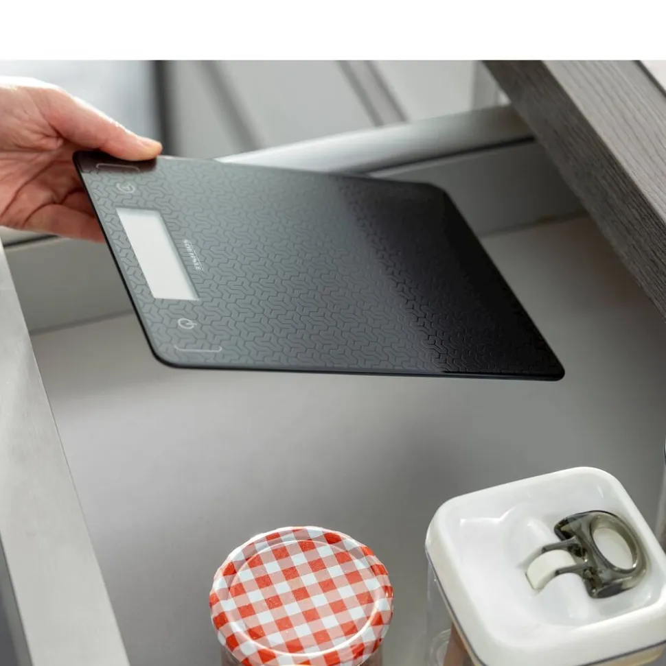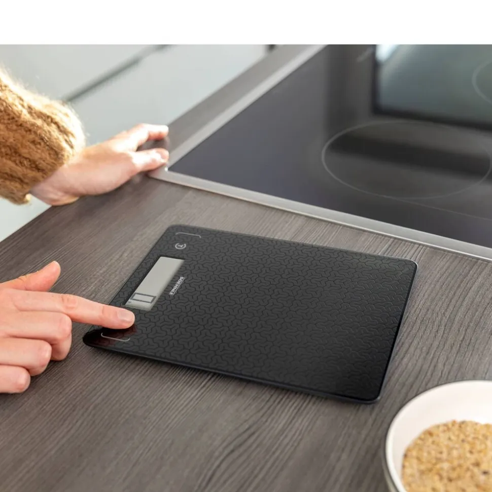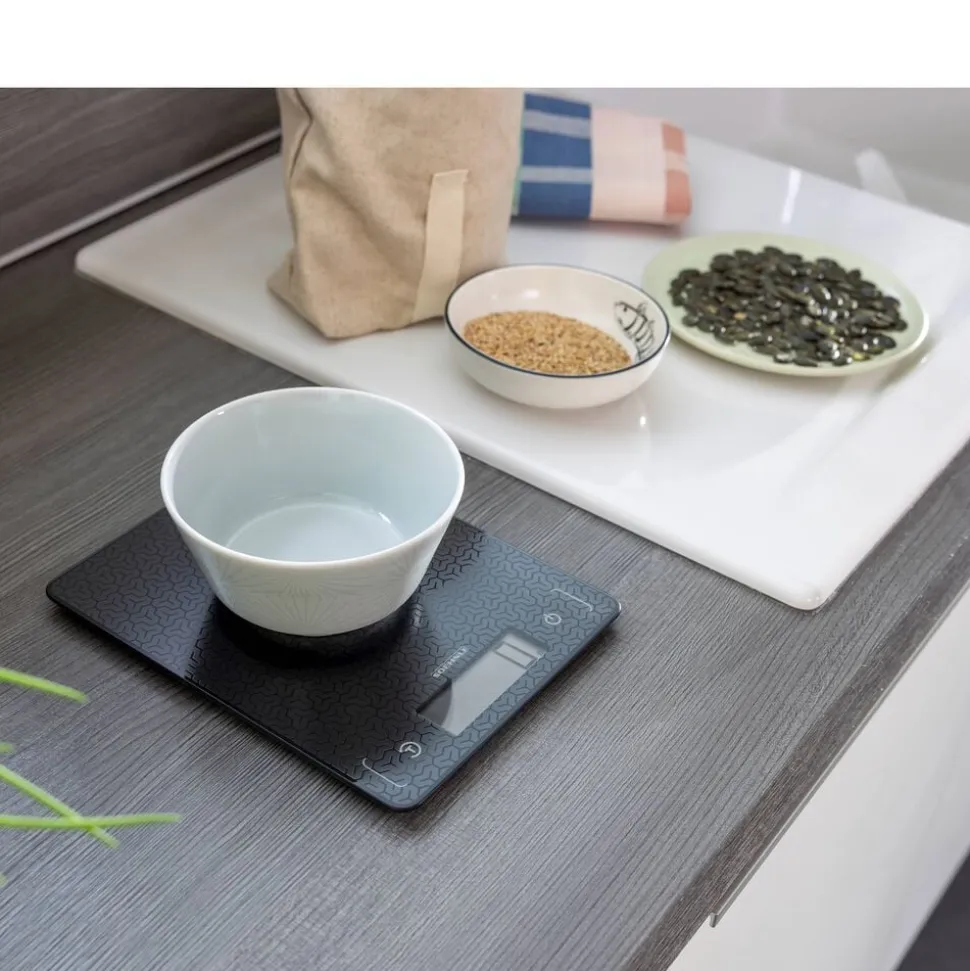 Køkkenvægten Page Comfort Mosaic har en mosaikinspireret overflade, som giver et moderne udseende. Det ultraflade design på kun 9,9 mm gør vægten nem at opbevare i en skuffe. Den har et tydeligt LCD-display, som er let at aflæse, og med en kapacitet på op til 10 kg og en præcision på 1 gram kan du veje både små og store mængder nøjagtigt. Den praktiske tara-funktion gør det muligt at veje flere ingredienser i samme skål. Sensor touch-knapperne sikrer en nem betjening, og vægten slukker automatisk efter brug.