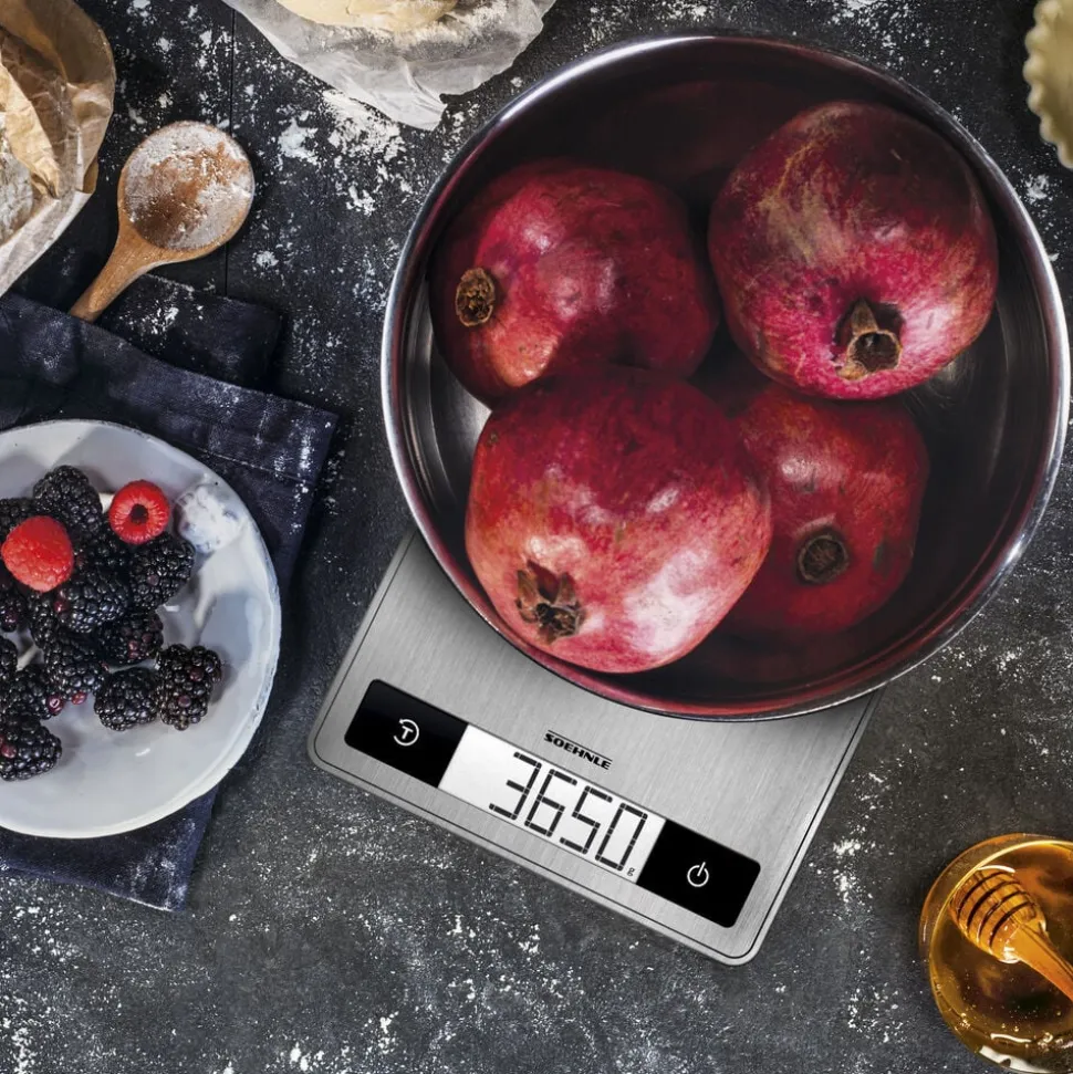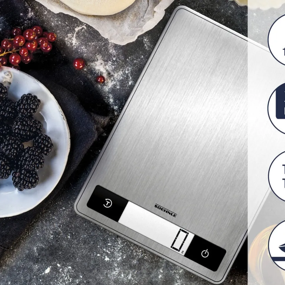 Page Profi 200 er en køkkenvægt i kompakt og ekstra tyndt design (24 x 17,5 x 1,6 cm). Den praktiske overflade i rustfrit stål er nem at rengøre og giver vægten et stilrent udtryk. Vejer op til 15 kg med interval på 1 g, hvilket gør den ideel til fx krydderier. Letlæseligt display, tarafunktion og automatisk sluk. Enhederne vises i g/kg eller oz/lb.