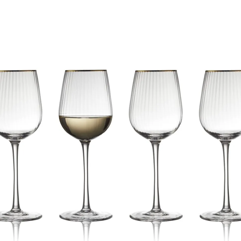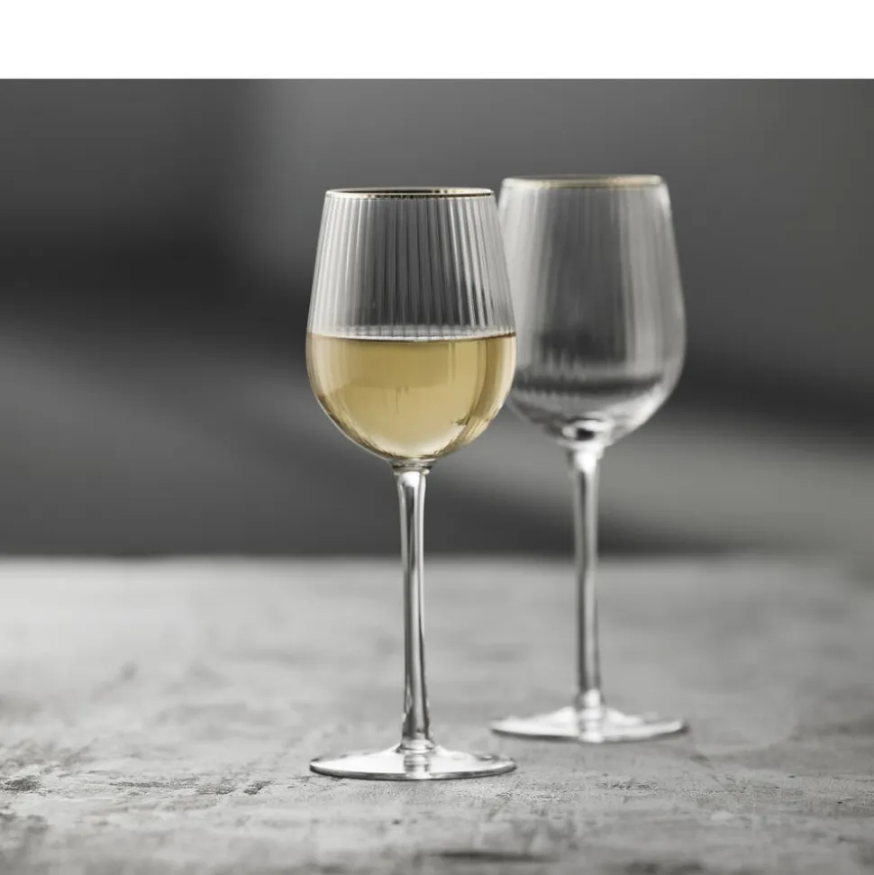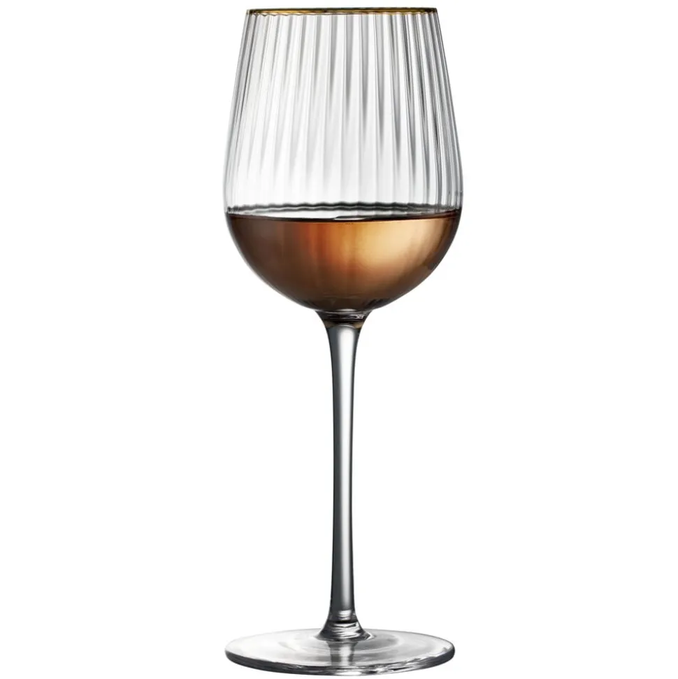 Smukt vinglas med bløde, rundede former. Det elegante, riflede design med en fin guldkant giver glasset et flot vintagelook, der samtidig afspejler tidens trends. Server din bedste vin i glasset og lad de fine facetter reflektere lyset og glassets indhold på smukkeste vis.