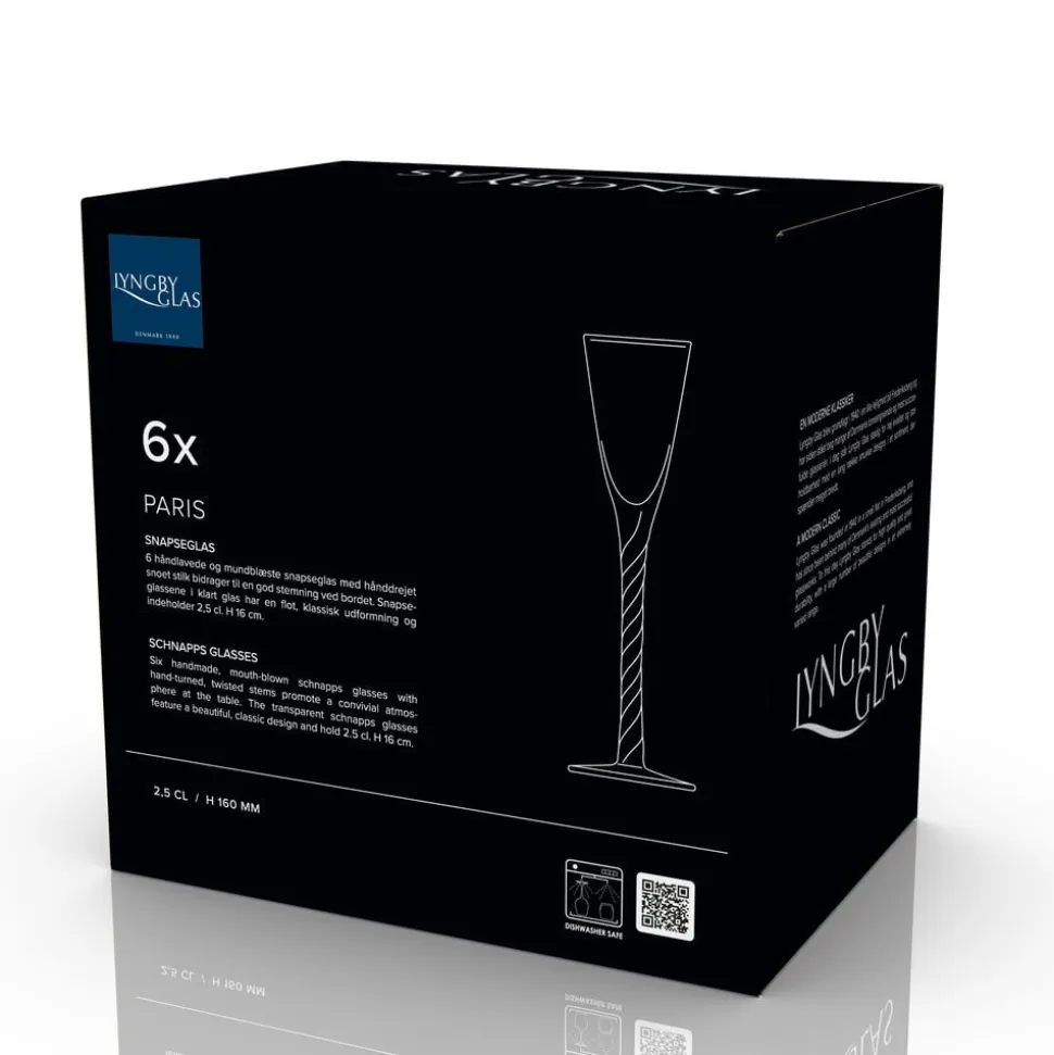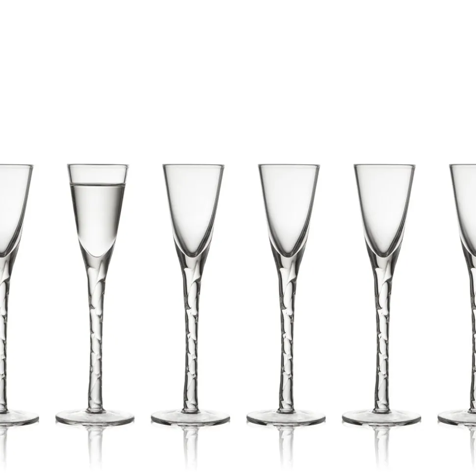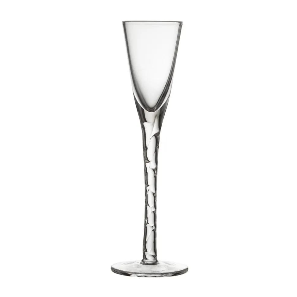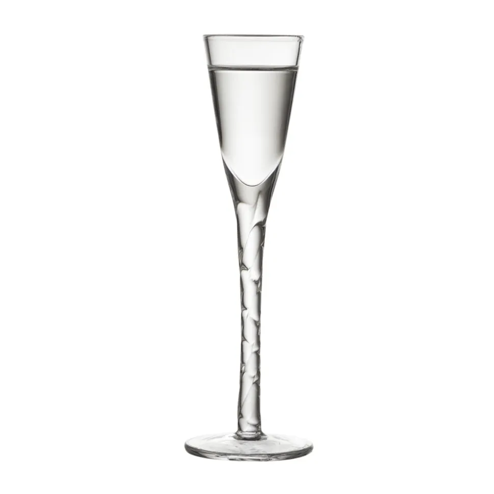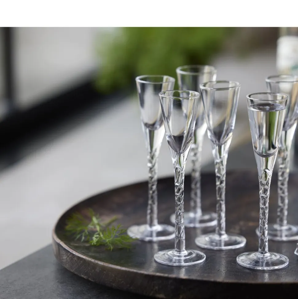 6 håndlavede og mundblæste snapseglas med hånddrejet snoet stilk bidrager til en god stemning ved bordet. Snapseglassene i klart glas har en flot, klassisk udformning og indeholder 2,5 cl. H 16 cm.