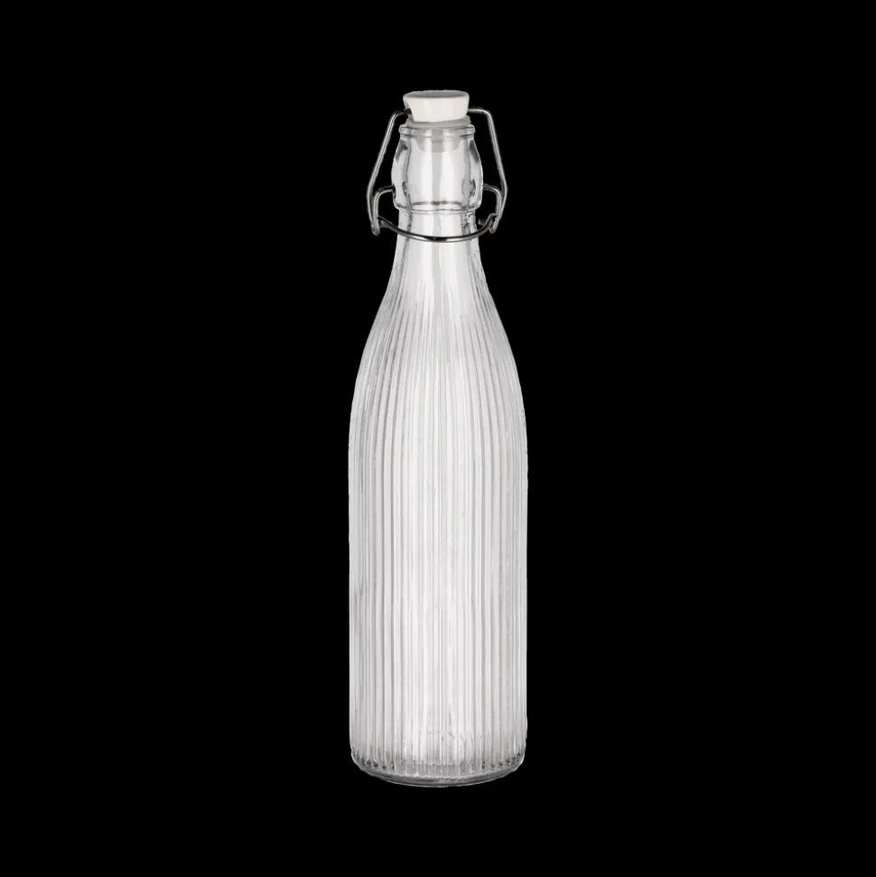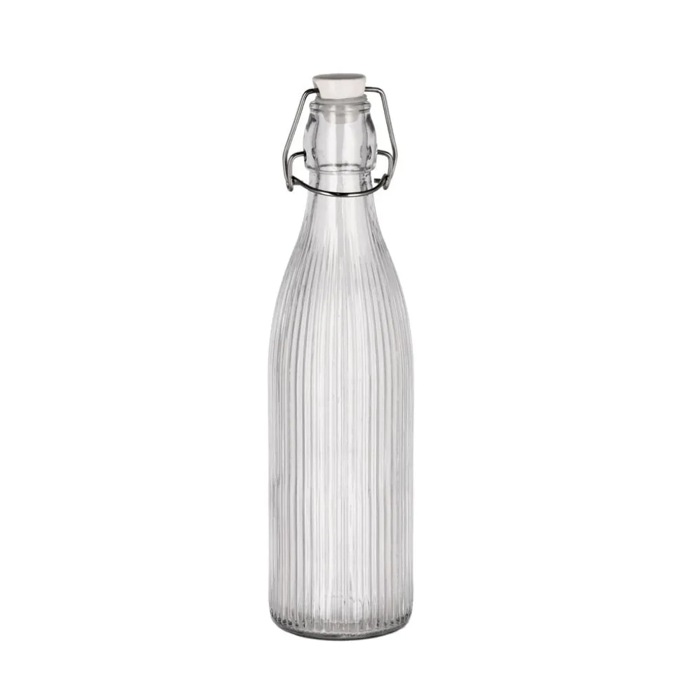 Riflet glasflaske med patentlukning. Porcelænslåg med silikonering og lås af rustfrit stål.
