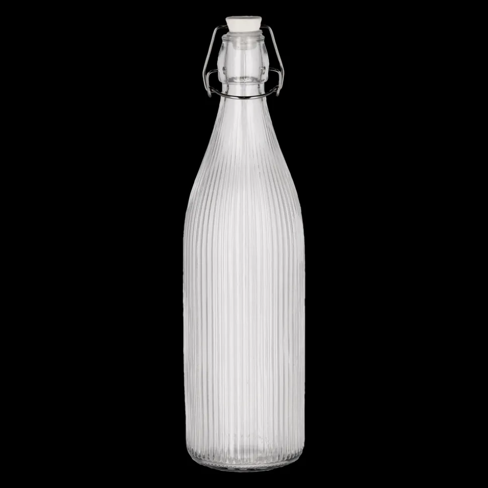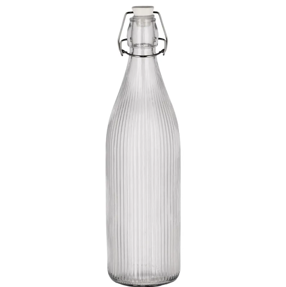 Riflet glasflaske med patentlukning. Porcelænslåg med silikonering og lås af rustfrit stål.