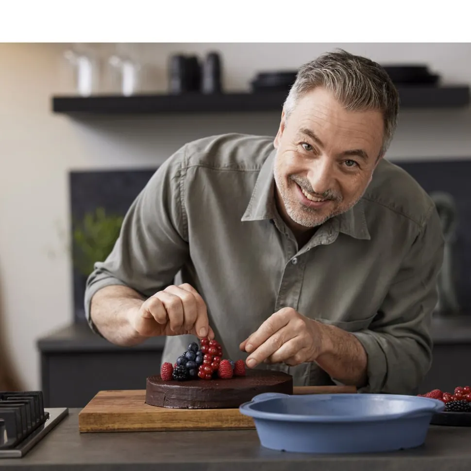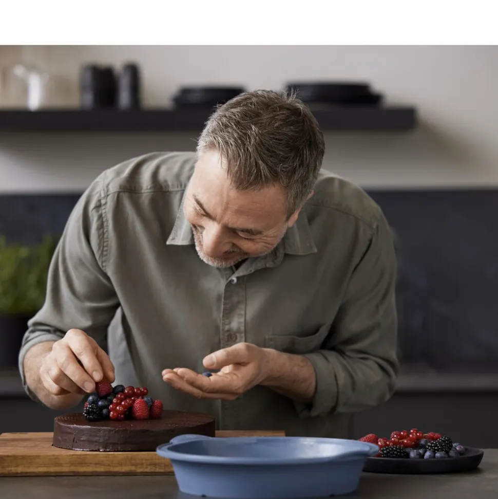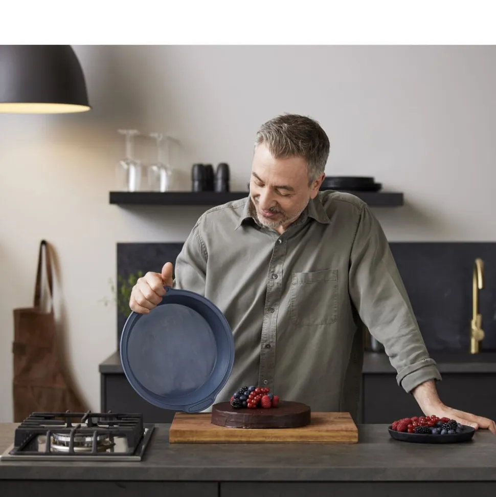 Denne runde kageform er oplagt til at bage luftige lagkagebunde og støbe lækre moussekager. Formen er fremstillet i silikone, der sikrer, at kagen ikke sidder fast og går i stykker, når formen skal fjernes. Formen kan fryses, vaskes i opvaskemaskine og tåler temperaturer op til 220 grader C. Kan rumme 2,2 liter.