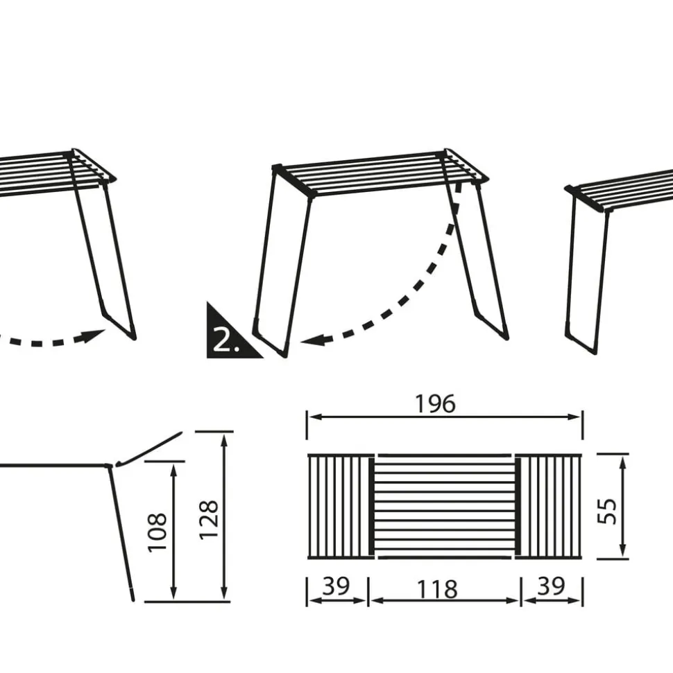 Dette tørrestativ er højere (108 cm) end normale tørrestativer, hvilket muliggør tørring af f.eks. lange bukser på hele tørrestativet.