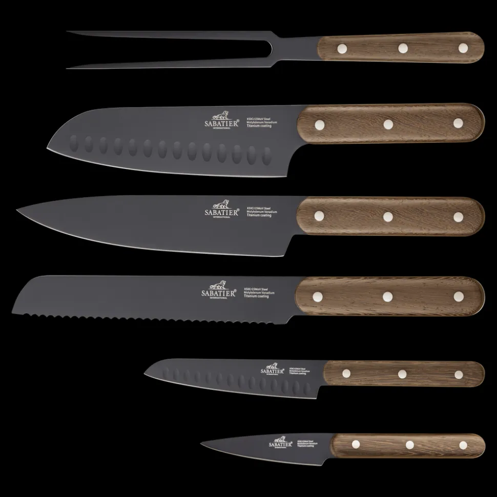 Phenix Walnut knivsæt i Lion Sabatiers verdenskendte kvalitet og med håndtag i eksklusivt valnøddetræ. De superskarpe knivblade er skabt af stærkt rustfrit stål (5Cr15MoV) og belagt med titanium. Leveres i fin gaveæske.