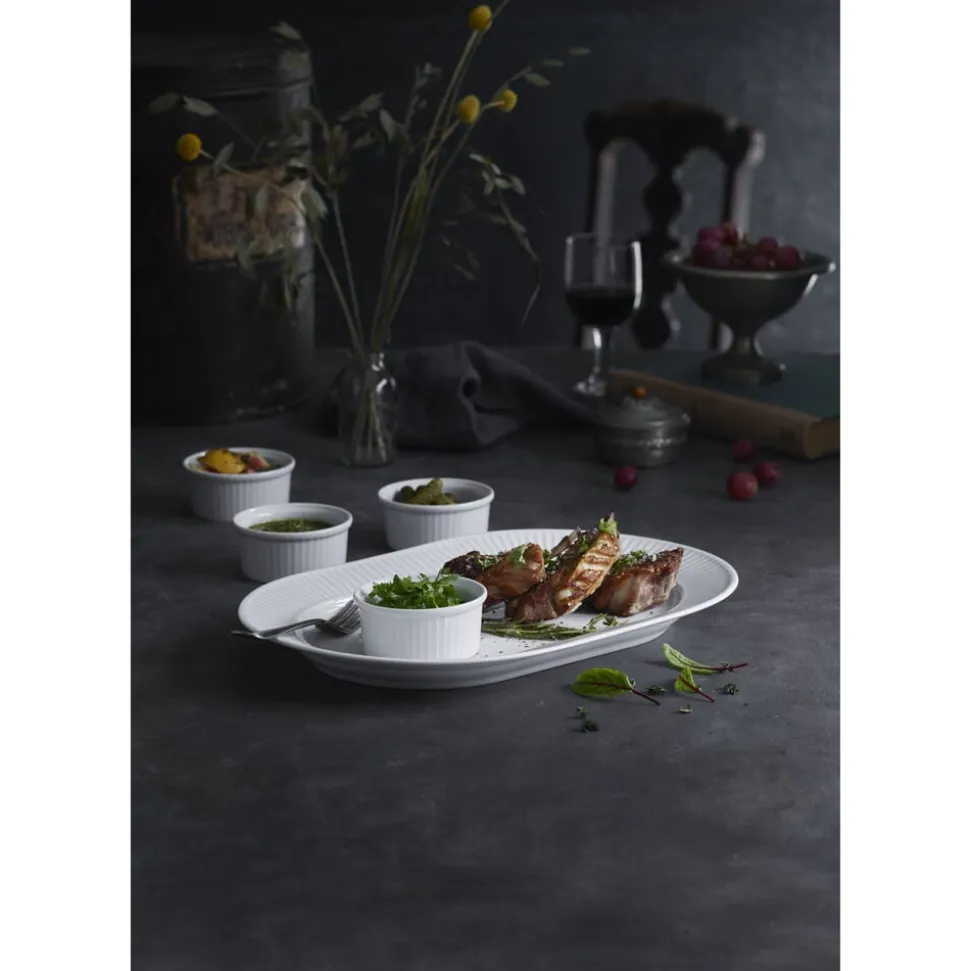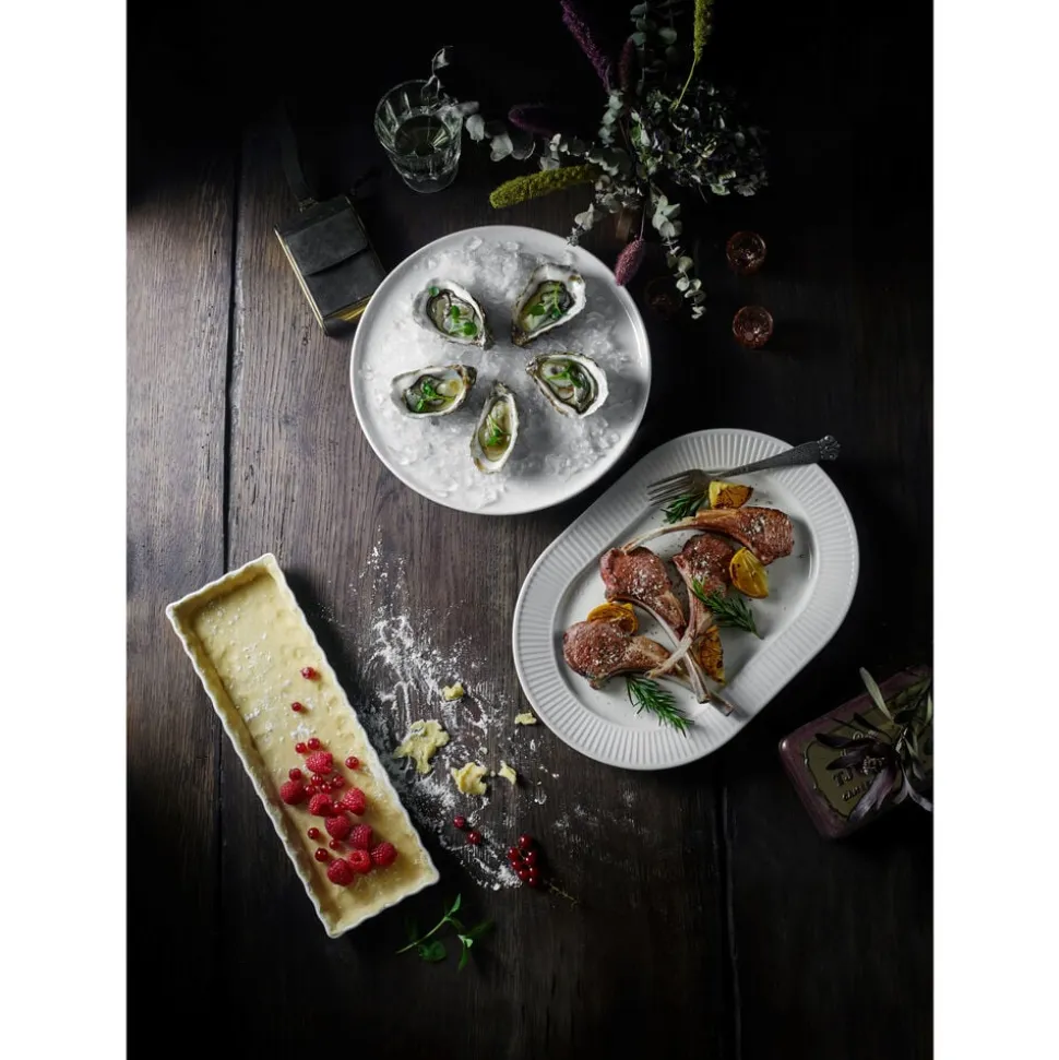 Elegant ovalt serveringsfad på 36 x 25 cm til servering af kolde og varme retter.