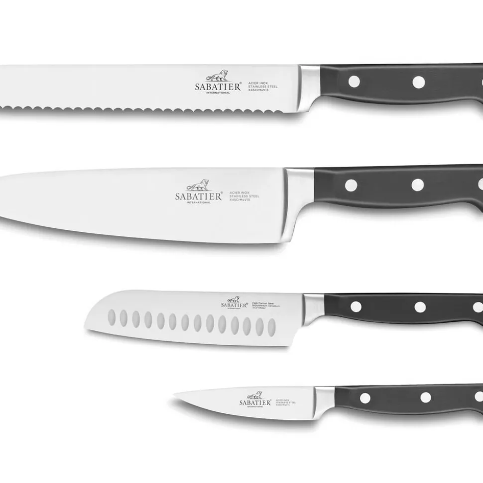 Pluton knivsæt fra Lion Sabatier til alle dine opgaver i køkkenet. Knivene har en optimal vægt og balance, der ligger behageligt i hånden. Knivsættet kommer i en gaveæske og består af kokkekniv (20 cm), brødkniv (20 cm), santokukniv (13 cm) og urtekniv (9 cm).