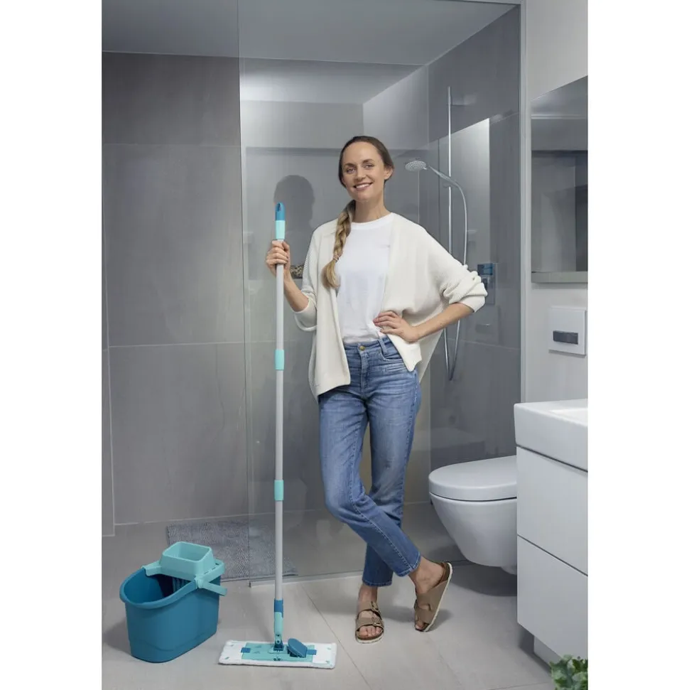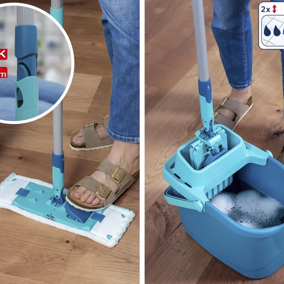 PowerClean M gulvvaskersæt med spand, vrider og gulvvasker. Sættet indeholder en 10-liters spand med ergonomisk håndtag, som gør spanden nem at bære, selv når den er fuld. Den medfølgende vrider er let at klikke på spanden, hvor den sidder godt fast. På den måde kan gulvet nemt rengøres uden behov for at bøje sig ned eller røre ved det beskidte vand. Gulvvaskeren har en arbejdslængde på 150 cm og et fleksibelt 360° roterende led, som gør det nemt at rengøre i hjørner, på trapper og under møbler. Mikrofiberkluden fastgøres med velcro og kan maskinvaskes ved 60 °C. Vaskebredden er 33 cm. Den store fodudløser gør det nemt at låse bundpladen op, mens man står op.