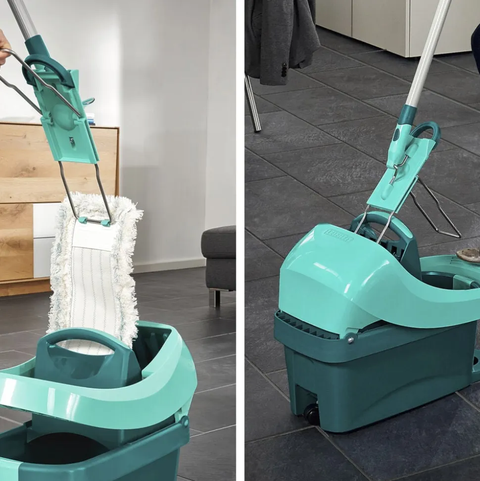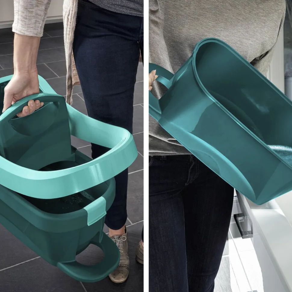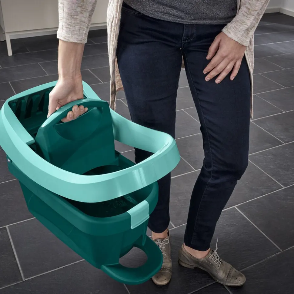 Med det fleksible 360 ° drejeled kan du effektivt føre gulvvaskeren rundt i bløde sving og komme ubesværet omkring bord- og skabsben og under møbler og senge. Dobbeltfiber-kluden når de mindste fordybninger og fjerner selv genstridigt snavs grundigt. Spanden har to letrullende hjul og skubbes nemt omkring.