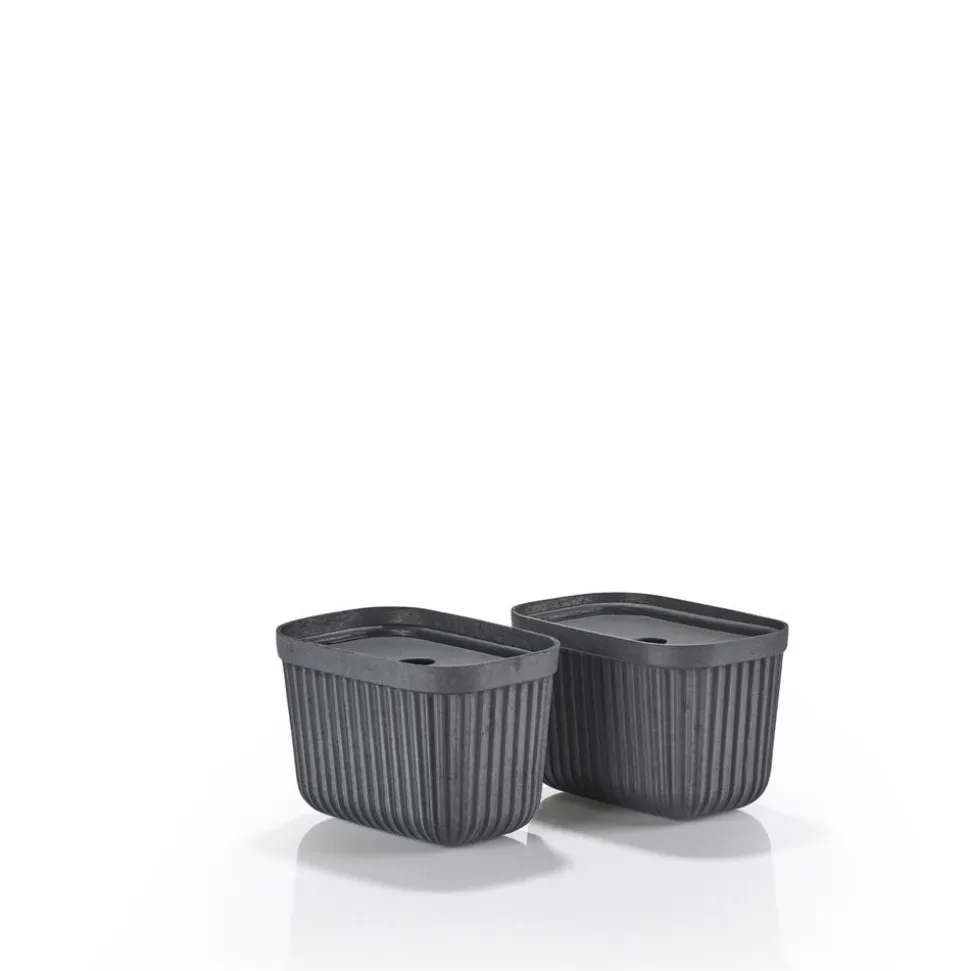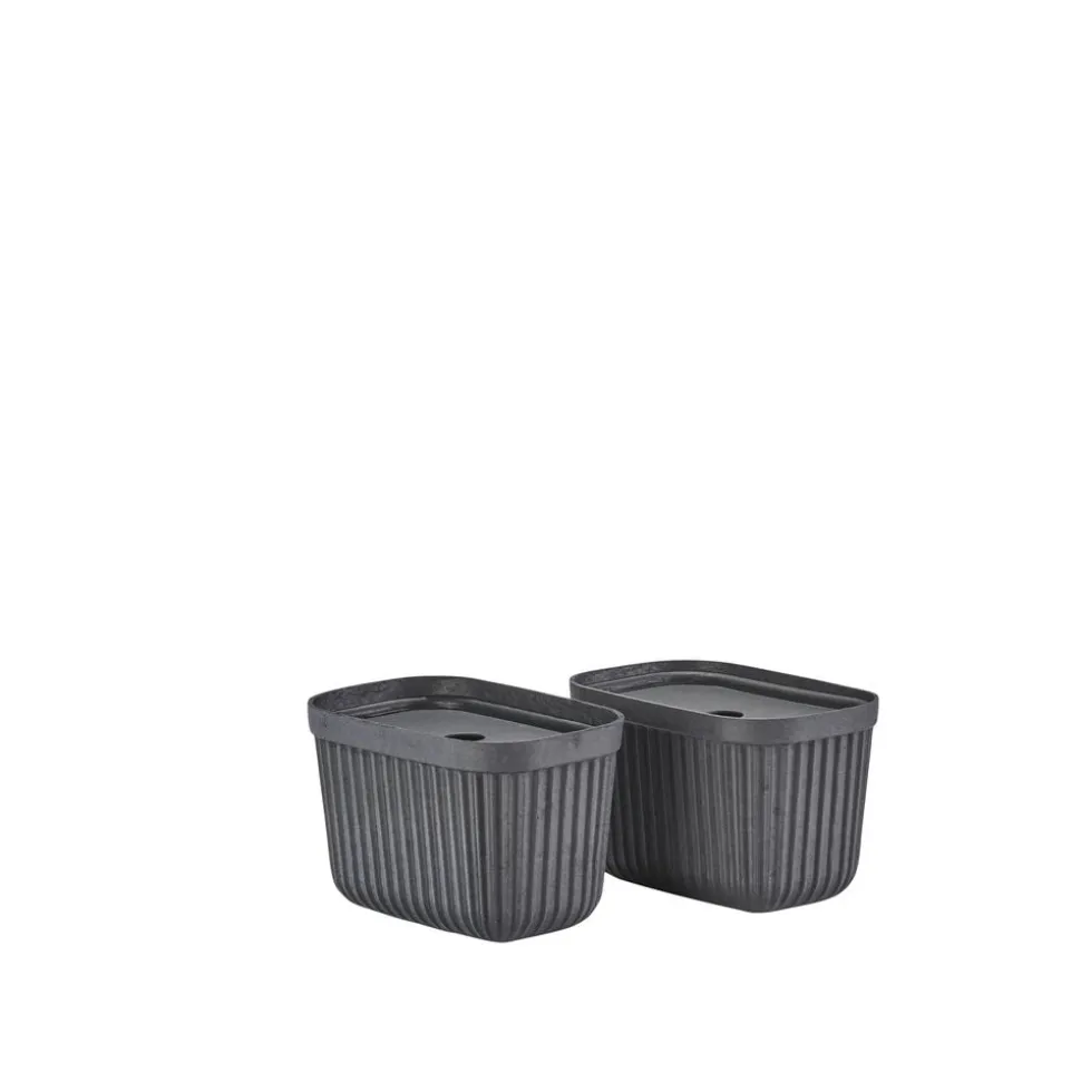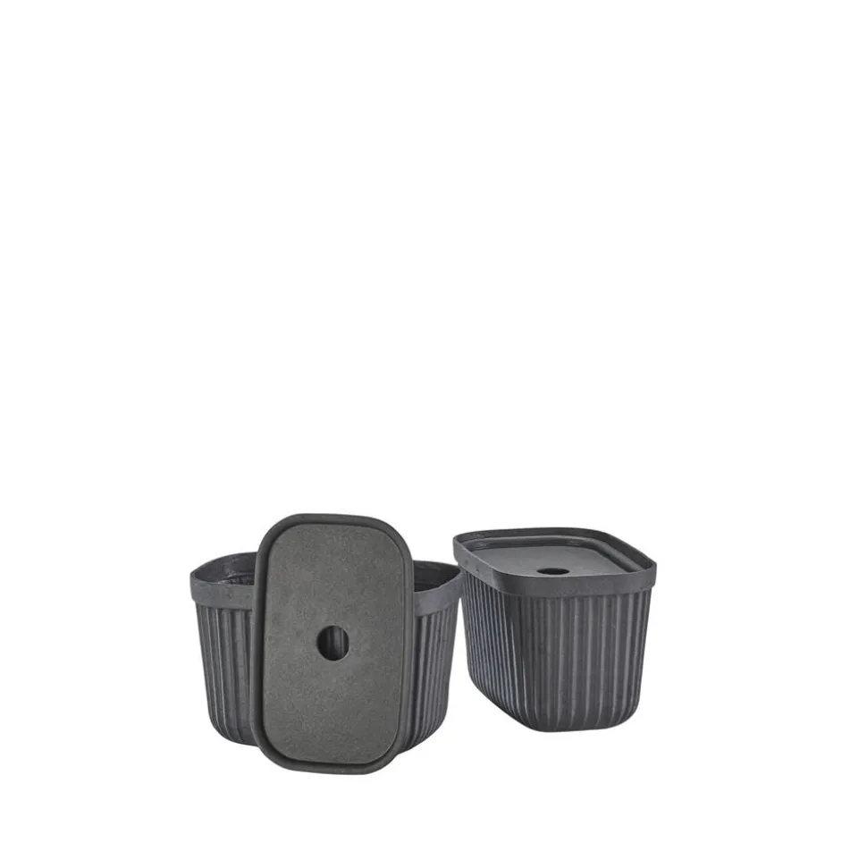 Pulp opbevaringsbokse er lavet af papirrester og rester af sukkerrør. En serie stabelbare bokse, der på én gang udtrykker æstetisk nostalgi og rå nytænkning. Det rillede mønster på siden er med til at sikre styrke og stabilitet. Pulp er et både praktisk og dekorativt element på hylderne i stuen, kontoret, entreen eller dit walk-in closet. Og i øvrigt en glimrende gaveide til den miljøbevidste æstetiker.