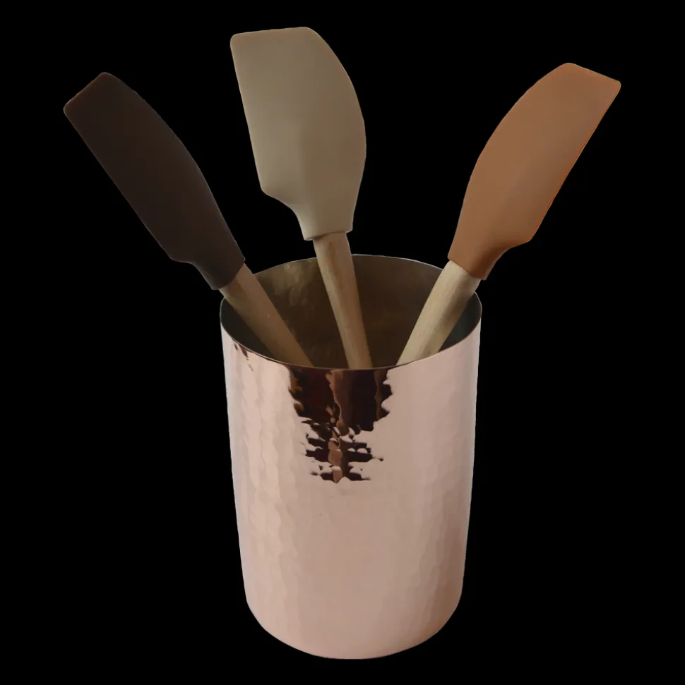 Redskabskrukke af hamret kobber i elegant fransk design. Opbevar dine grydeskeer, piskeris og dejskrabere med stil. Redskabskrukken fra Mauviel giver dig både praktisk opbevaring og et smukt designelement i køkkenet.