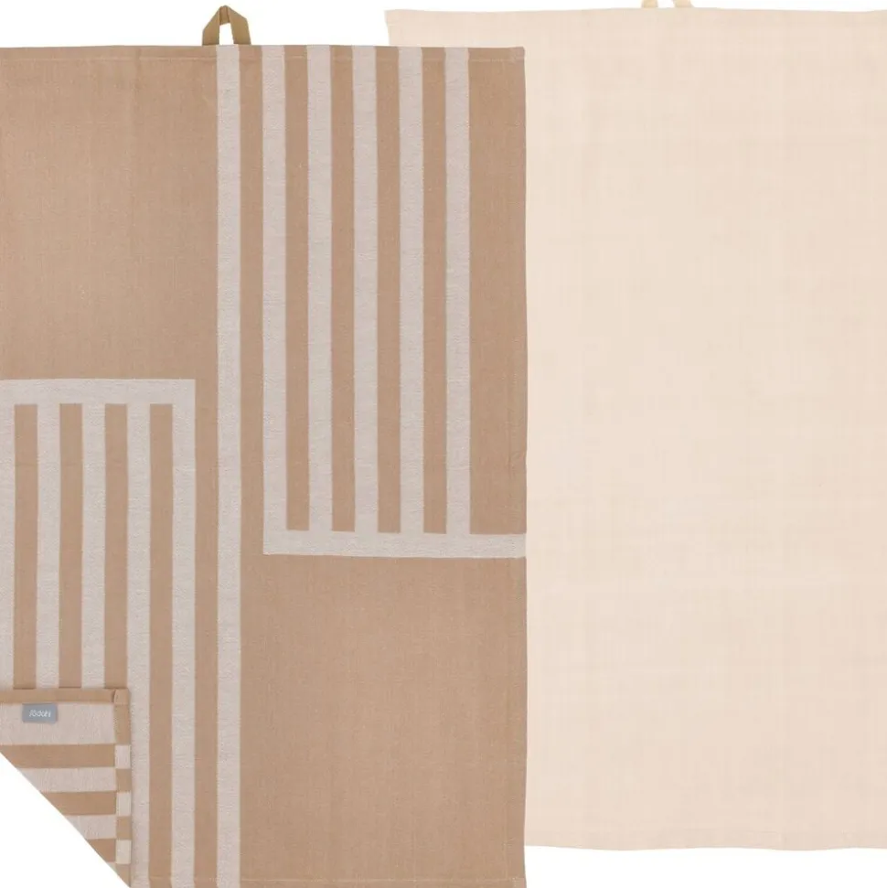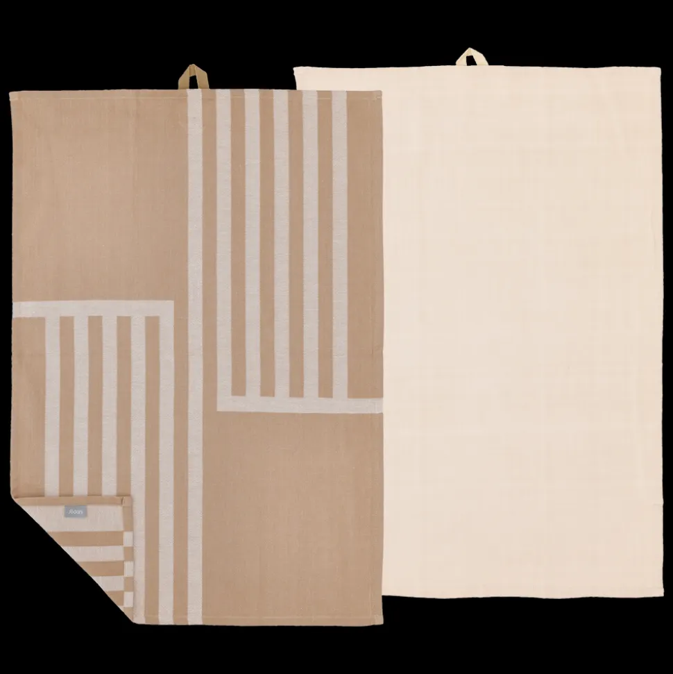 Dette design afspejler vores kærlighed til rene linjer og minimalistisk elegance. Det sofistikerede motiv bestående af lodrette og vandrette striber er både moderne og klassisk. Det grafiske design bliver komplementeret af et viskestykke i en ensfarvet twillvævning.