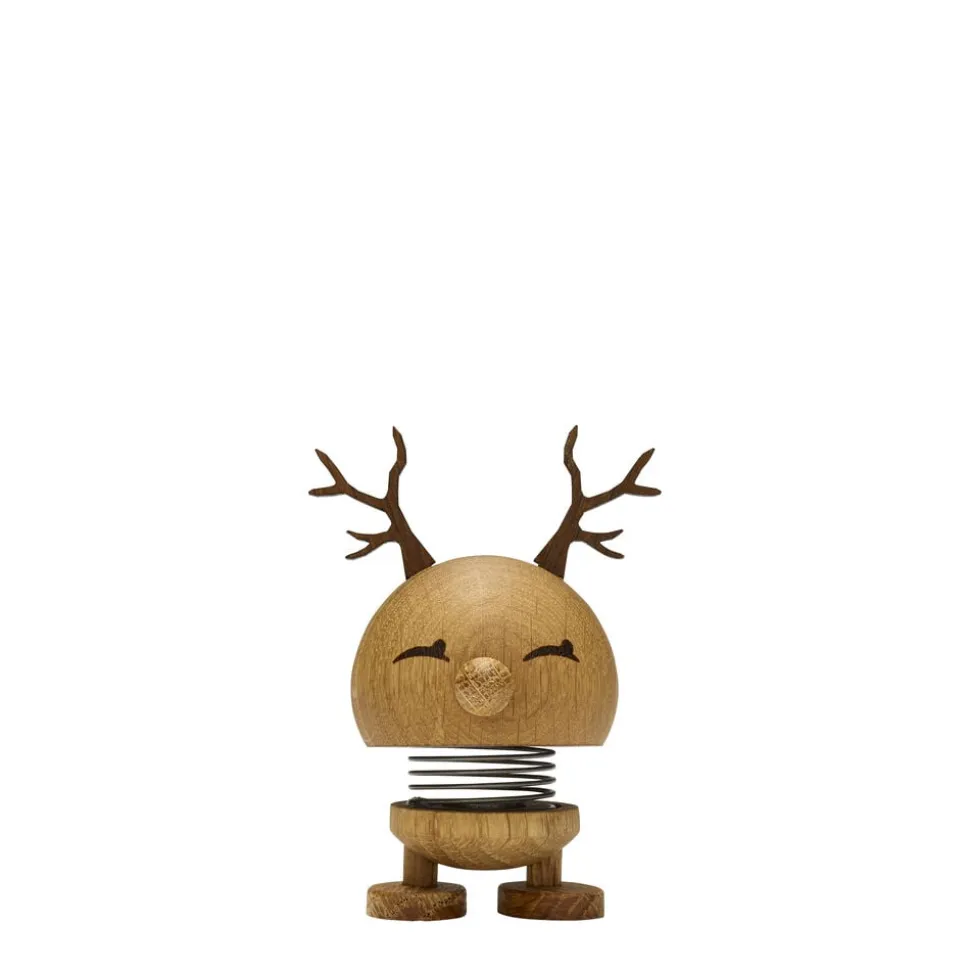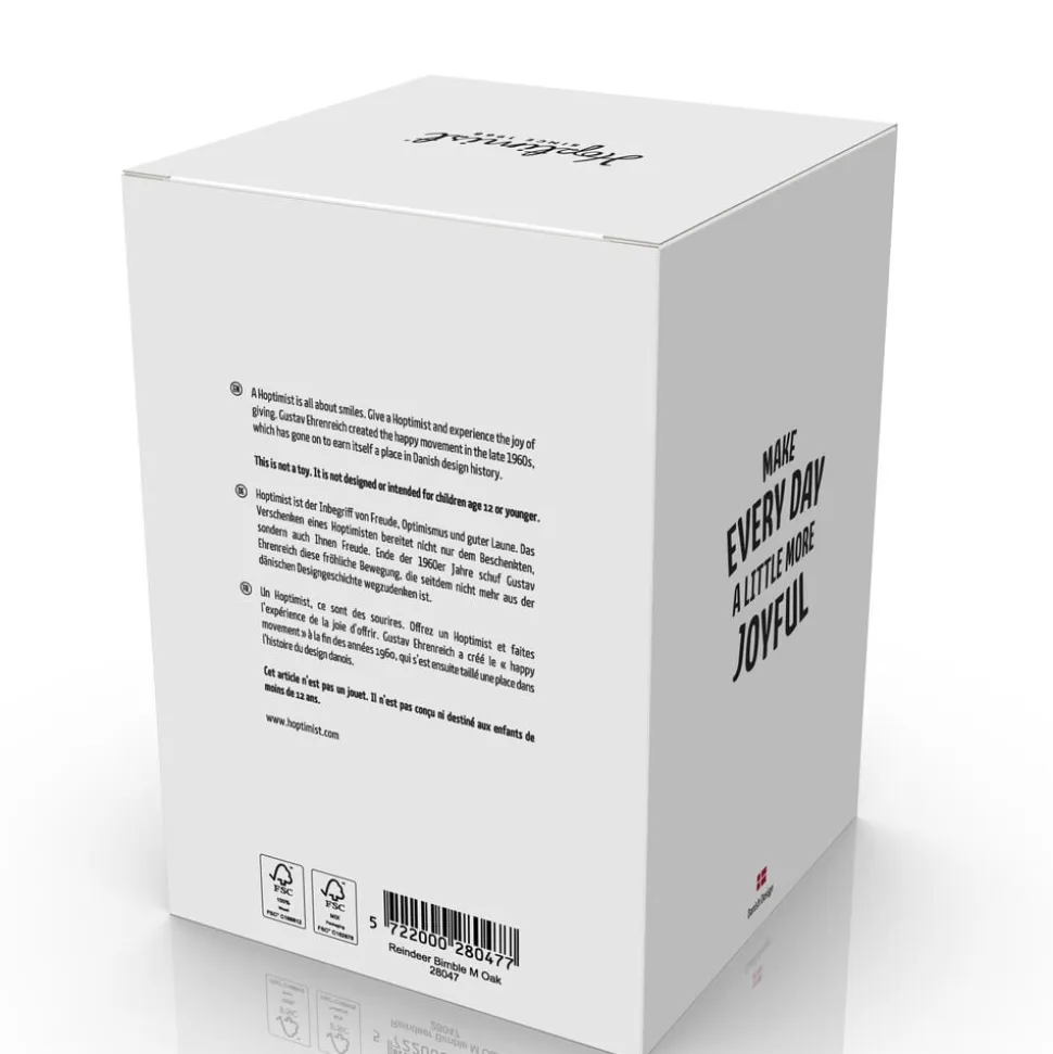 Julen er smilenes fest, og vores muntre rensdyr i egetræ skal nok få smilene til at brede sig i den glade højtid. De er selvfølgelig oplagte som julepynt, men geviret er aftageligt, så Hoptimisten kan sagtens forblive på hylden året rundt.