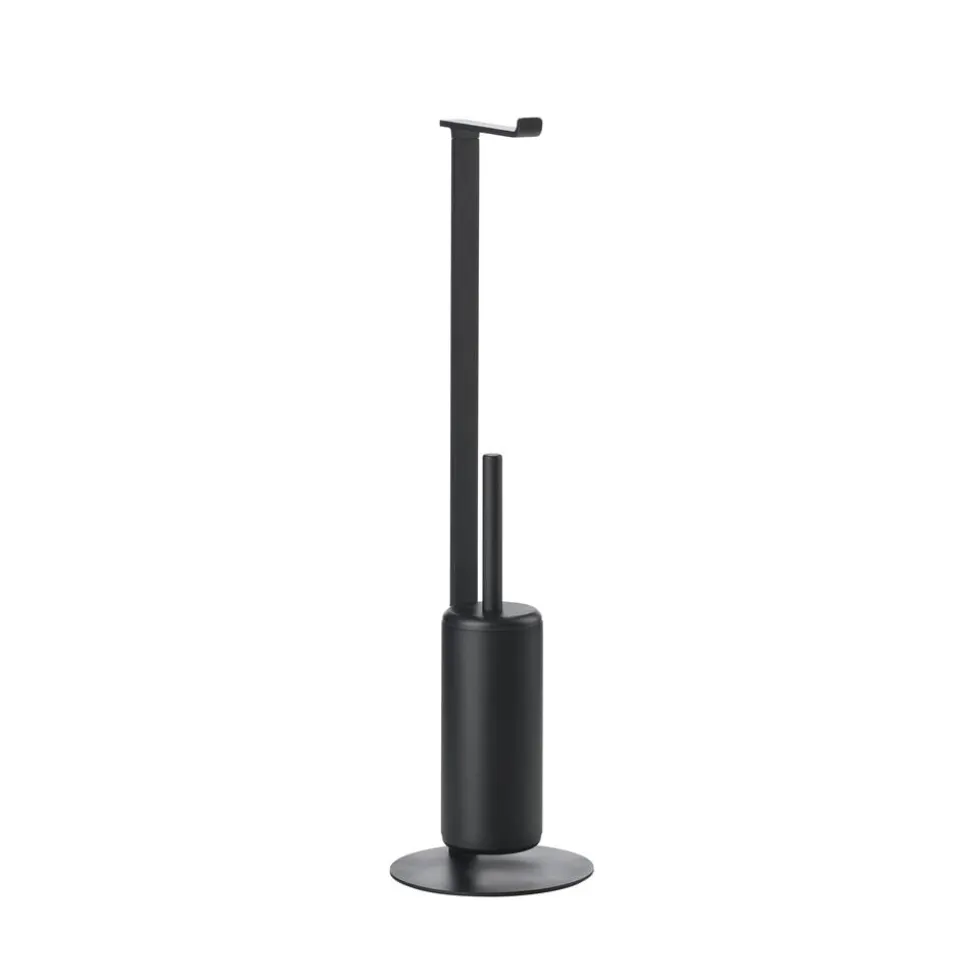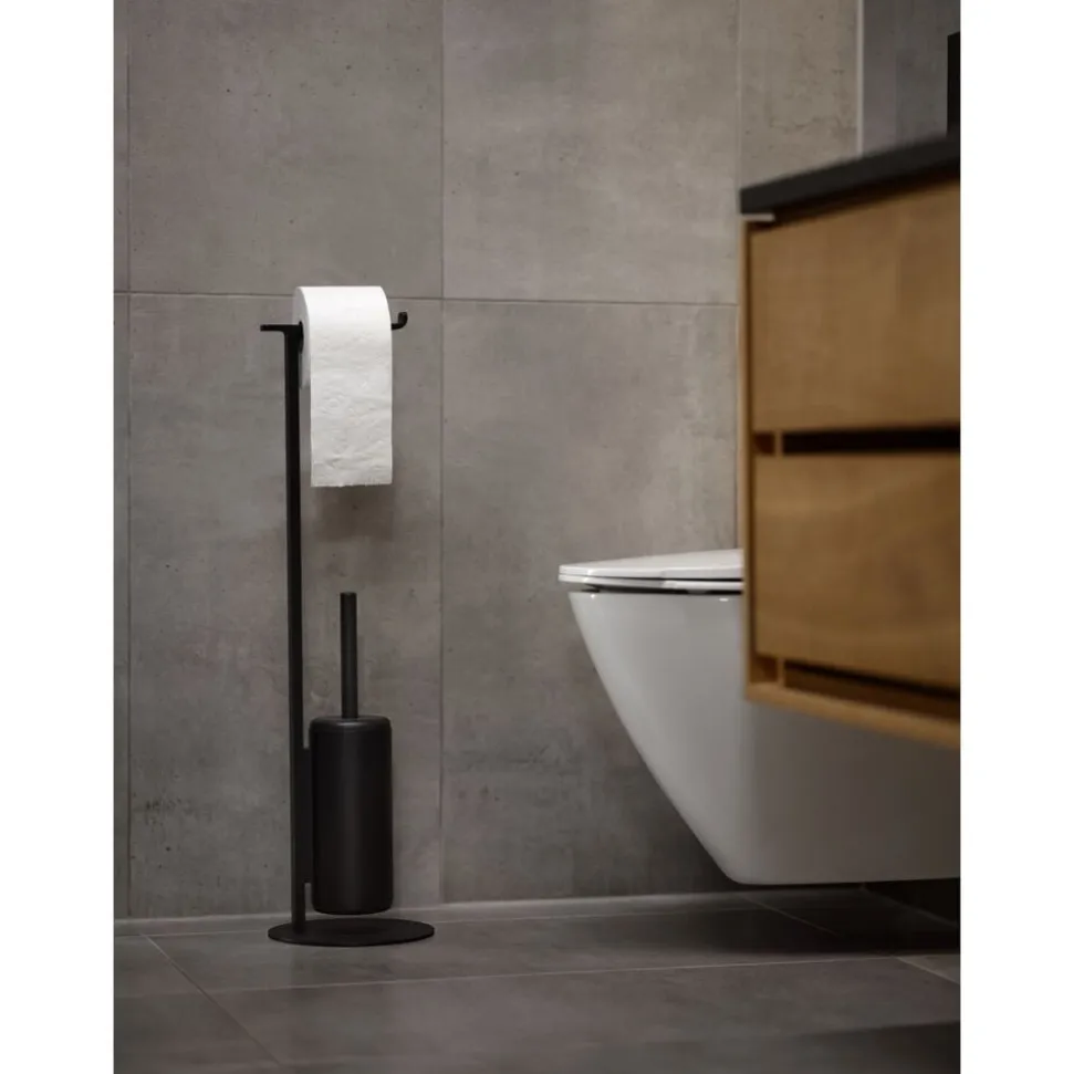Stilren funktionel løsning, der samler toiletpapir og toiletbørste i ét fritstående design – helt uden brug af skruer eller vægmontering. Den slanke rulleholder finder let sin plads i ethvert badeværelse og kan nemt flyttes takket være grebet i toppen. Praktisk ved rengøring – eller når du vil justere udtrykket en smule. Børsten står diskret og klar i bunden, mens det enkle formsprog matcher resten af RIM-serien.