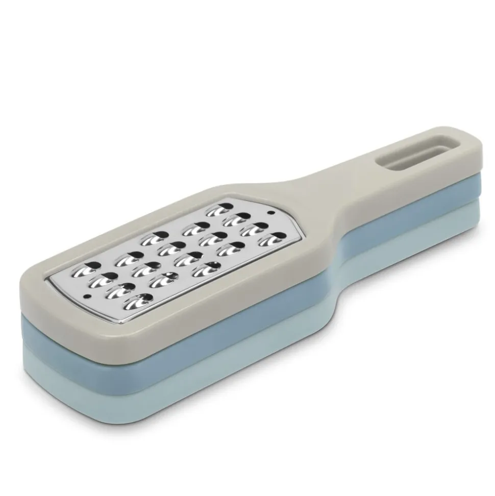 Dette praktiske sæt med tre rivejern gør madlavningen nemmere og mere effektiv. Sættet indeholder rivejern med tre forskellige skærstørrelser: grov, mellem og fin. Det grove rivejern er perfekt til ost eller grøntsager, det mellemstore til chokolade eller rodfrugter, og det fine rivejern har spidser, der gør det ideelt til at rive citrusskal eller muskatnød. Rivejernene kan klikkes sammen for kompakt opbevaring, hvilket sparer plads og holder dem samlet.