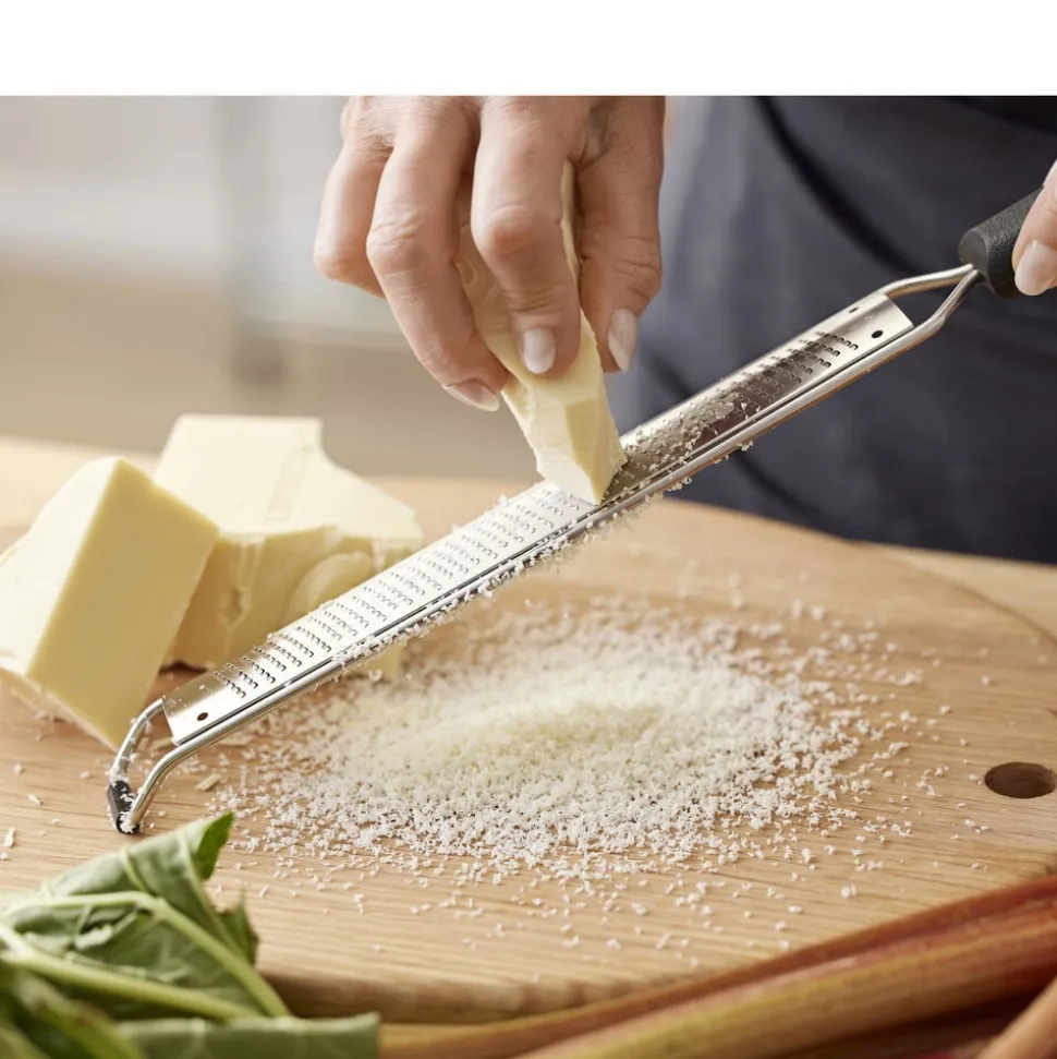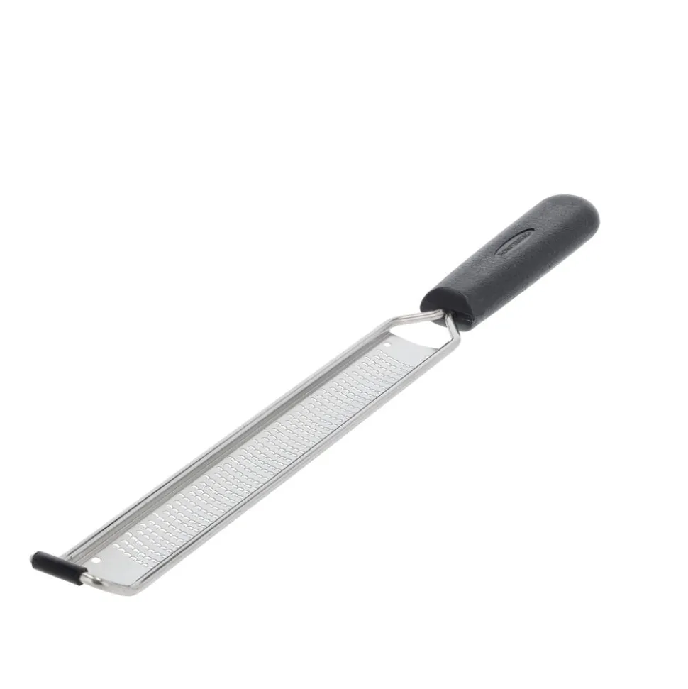 Dette ultrafine citrusrivejern i robust, rustfrit stål er perfekt til at rive det alleryderste lag af alle citrusfrugter, så du kun får den unikke og lækre smag af skallen uden bitterhed. Brug det også til at rive fint fnuller af chokolade eller frisk ingefær, parmesan, muskatnød, hvidløg m.m.