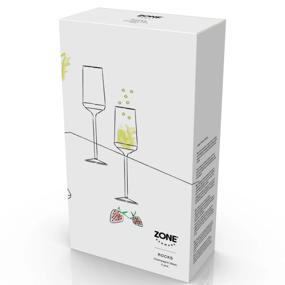 Der er altid noget at fejre. I Zone Rocks’ kollektion af blyfrit krystalglas finder du disse smukke mundblæste champagneglas med højt, slankt bassin, så du kan nyde synet af de sprælske bobler. 2 stk. 21 cl, højde 23 cm.