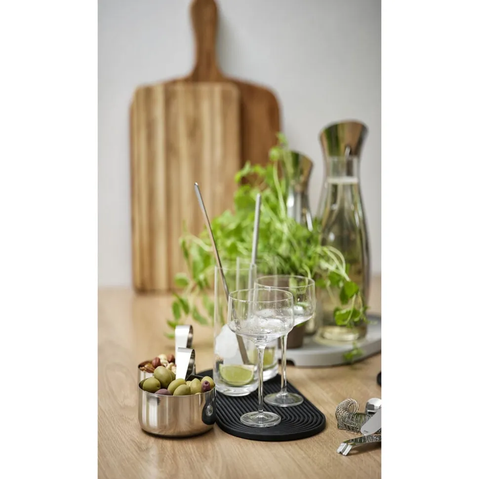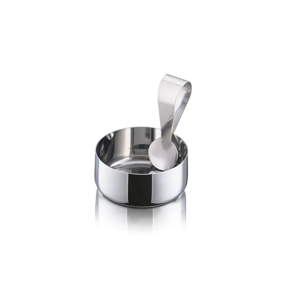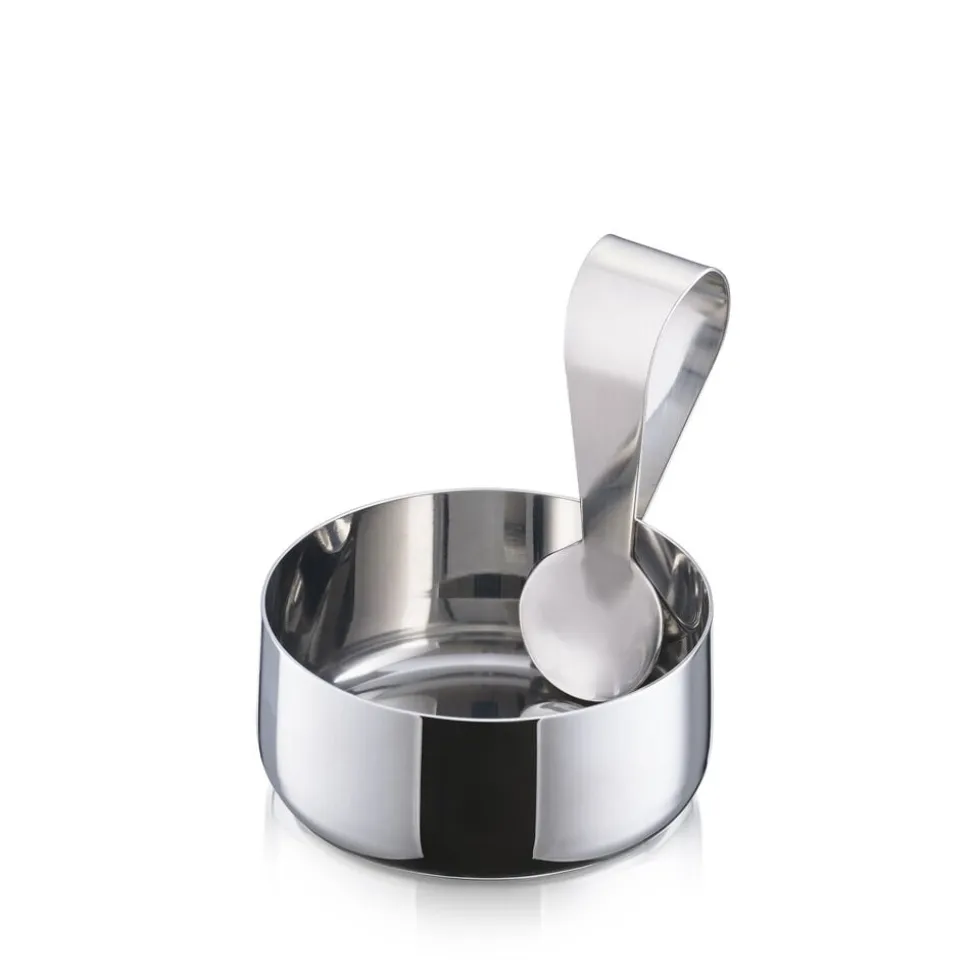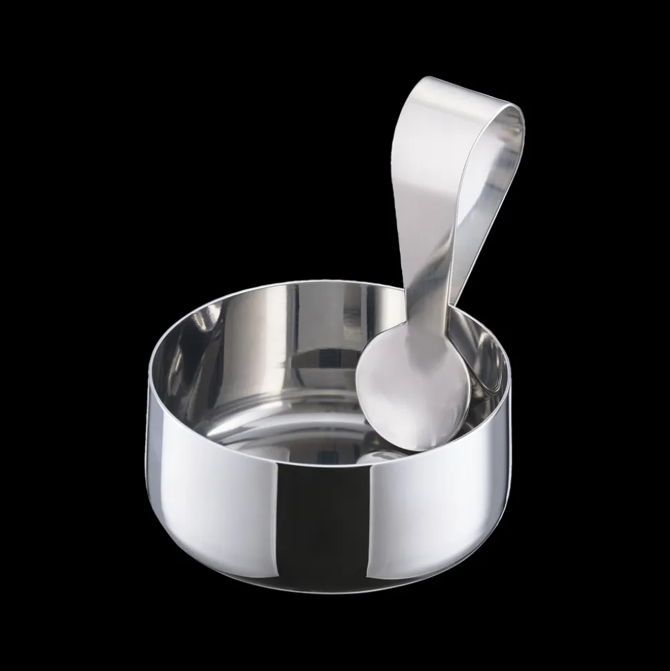 Fyld den lille skål med fx peanuts, cashews eller saltmandler og server dem til din yndlingsdrink. Den fine ske gør det hygiejnisk at dele, og den opbevares fikst på kanten af skålen som en smuk forlængelse af det enkle design.