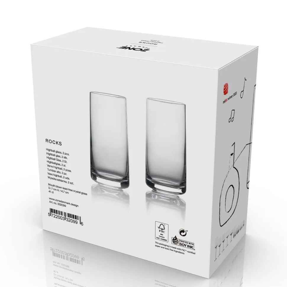 En god drink er et øjebliks nydelse, der appellerer til alle sanser, og nydelsen ved en longdrink forlænges, når den serveres i det obligatoriske Highball glas. Formen er enkel, stilren og smuk, og glassene i Rocks-serien er designet af Mavro/Léfevre. 41 cl.