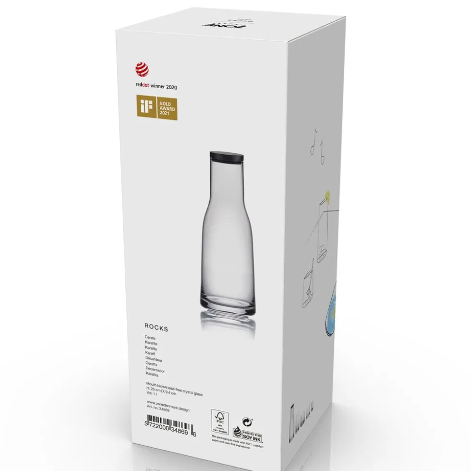 Den elegante karaffel i ROCKS-serien fås nu med praktisk silikone-låg. Det betyder, at du kan tappe vand og stille på køl uden at frygte en bismag af køleskab. Den ikoniske bund gengiver formsproget i seriens drinksglas, og karaflen passer derfor smukt sammen hermed. Gaveide eller selvforkælelse? Du bestemmer.