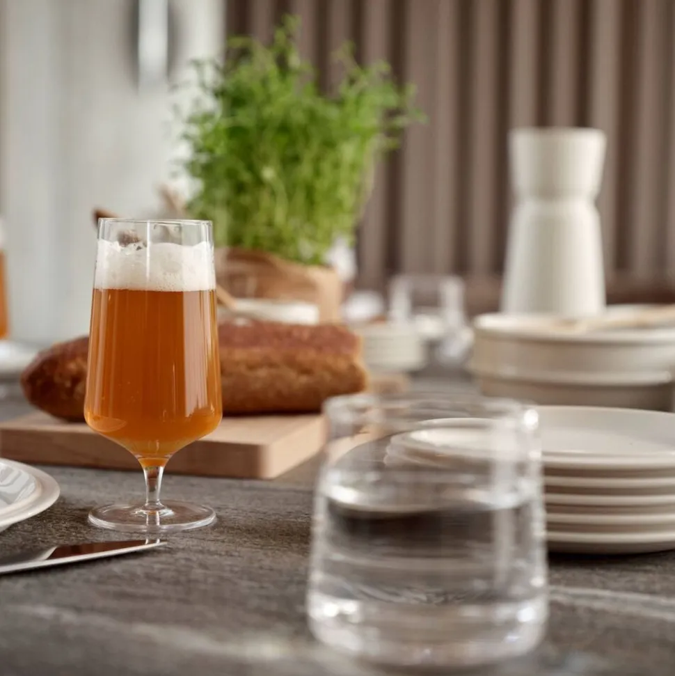 Så fint og feminint kan et ølglas være! Nyd synet, og glæd dig til at skænke op i lidt mindre format. Størrelsen passer perfekt, når du skal dele en enkelt øl, eller du gerne vil smage en smule af flere forskellige fra bordet. Mavro//Lefevre står bag det skønne design, som er udført i mundblæst glas og formmæssigt passer godt i selskab med seriens øvrige glas.