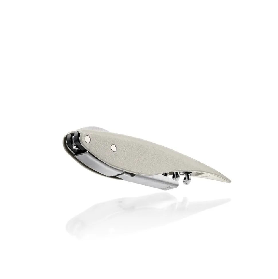 Den elegante proptrækker Feather er en lækker fortolkning af tjenerværktøjet, en klassiker i ny fjerdragt. Feather har indbygget folieskærer og oplukker, og den bøjelige arm gør det let at åbne flasken i to trin uden at bruge mange kræfter.