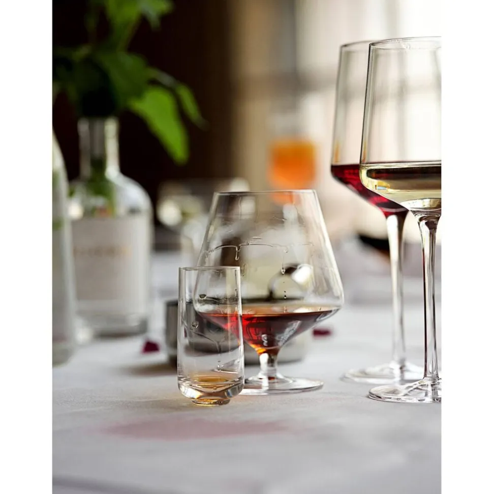 De elegante og stilsikre vinglas i mundblæst blyfrit krystal har en høj stilk og et bredt bassin. De snævrer let ind foroven, men ikke mere, end at vinen rammer gane og tunge perfekt – detaljer der sikrer den optimale nydelse af vinens farve, smag og bouquet. 2 stk. 40 cl.